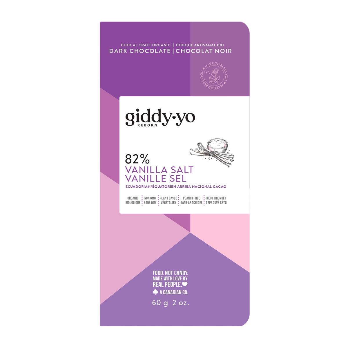 The 82% Vanilla Salt is the best-selling chocolate bar, a staff favorite, and what we believe is chocolate perfection—a true home run! At 82% dark, it's not just delicious; it's good for you too. That's how we roll.
