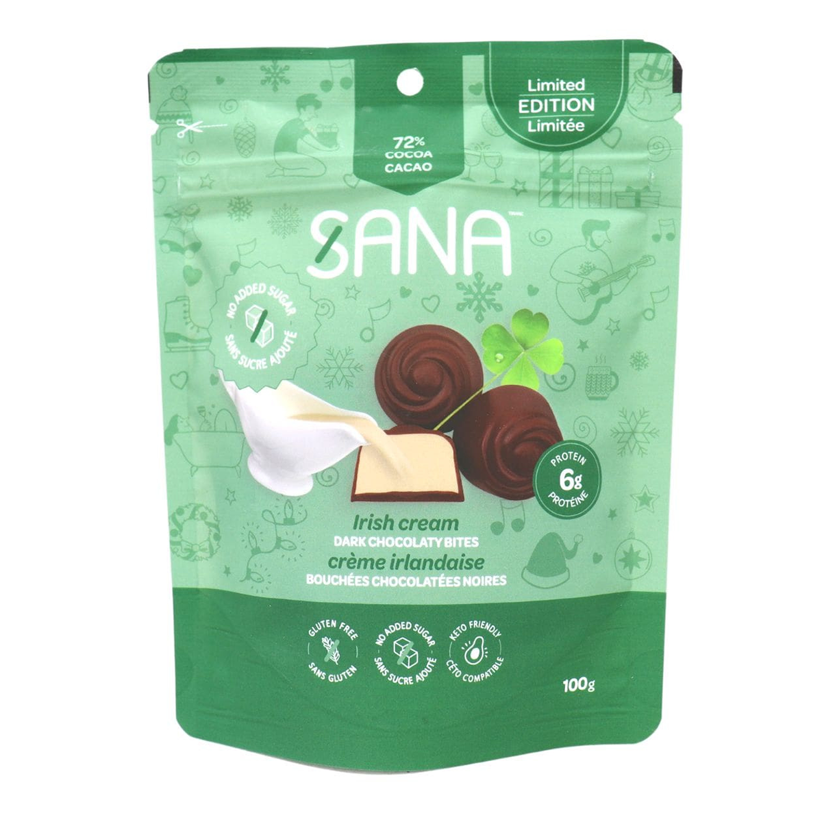 SANA's Irish cream flavoured dark chocolaty bites have no added sugar and 72% cocoa.