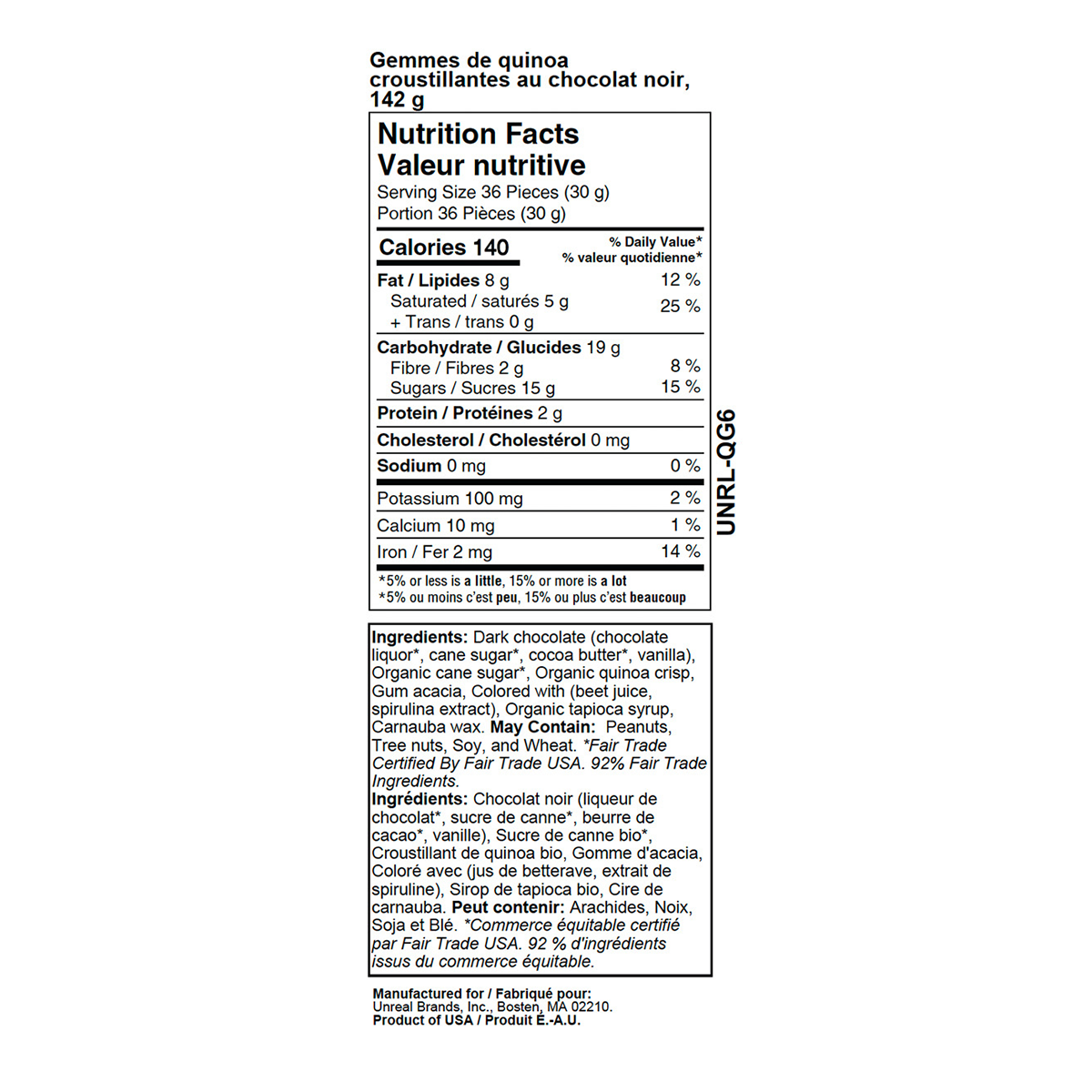Unreal Dark Chocolate With Crispy Quinoa Gems 142g