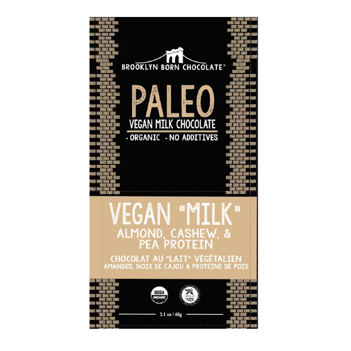 Brooklyn Born Chocolate Organic Paleo Milk Chocolate Bar Vegan Milk 60g