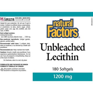 Natural Factors Unbleached Lecithin 1200mg 180 Softgels