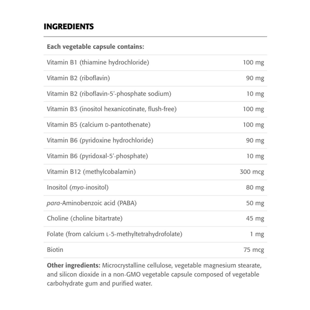 Advanced flush-free Ultra B Complex features biologically active B-complex vitamins formulated with PABA and choline as complementary nutriens for nervous-system performance.