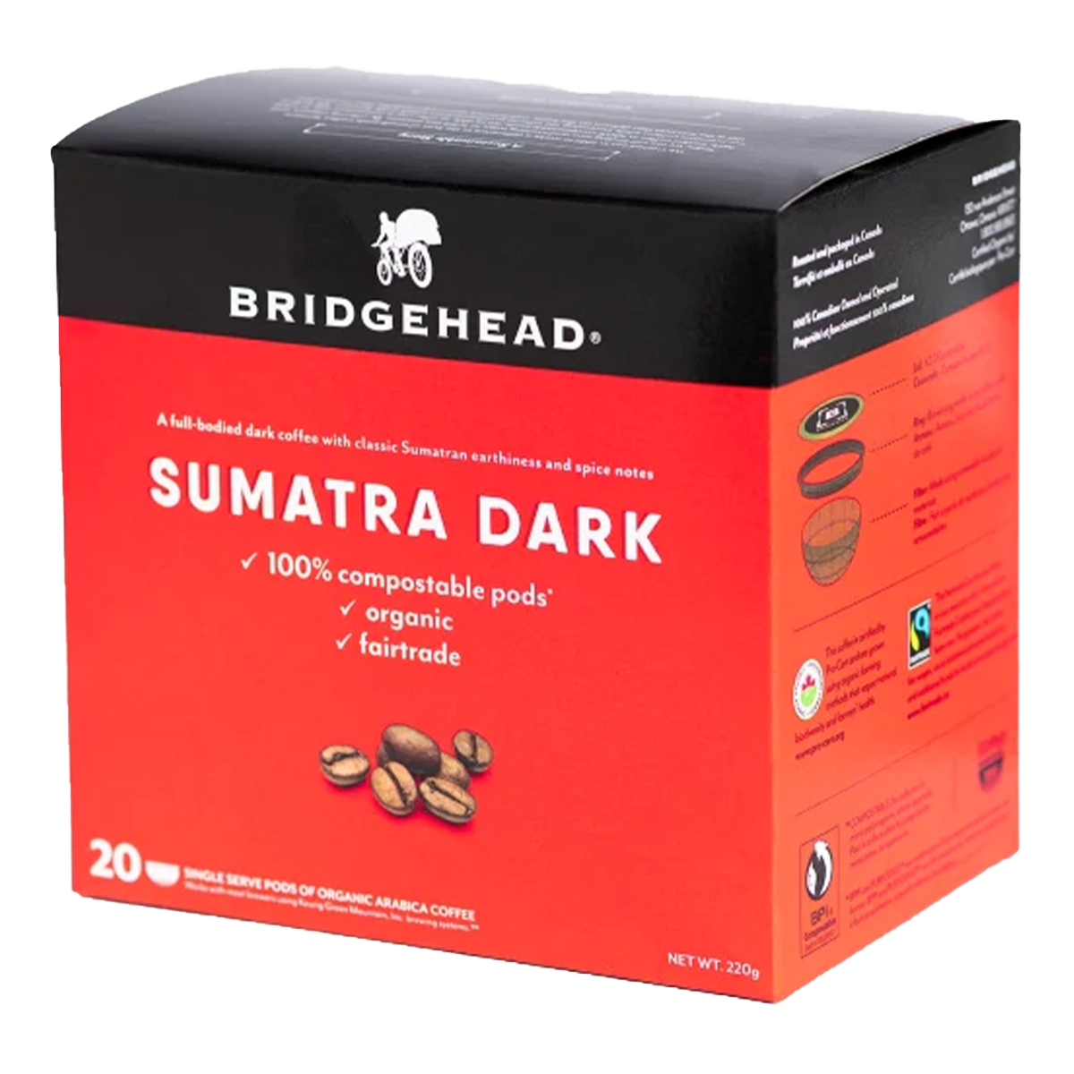 Bridgehead Organic Coffee Pods Sumatra Dark 220g