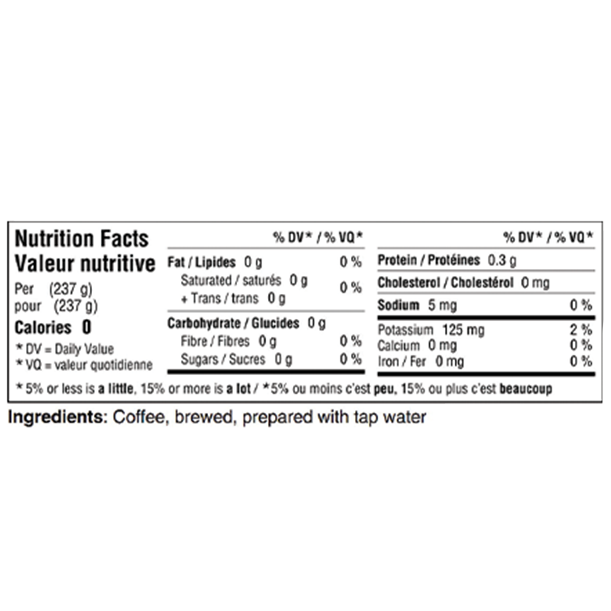 Coffee, brewed, prepared with tap water.