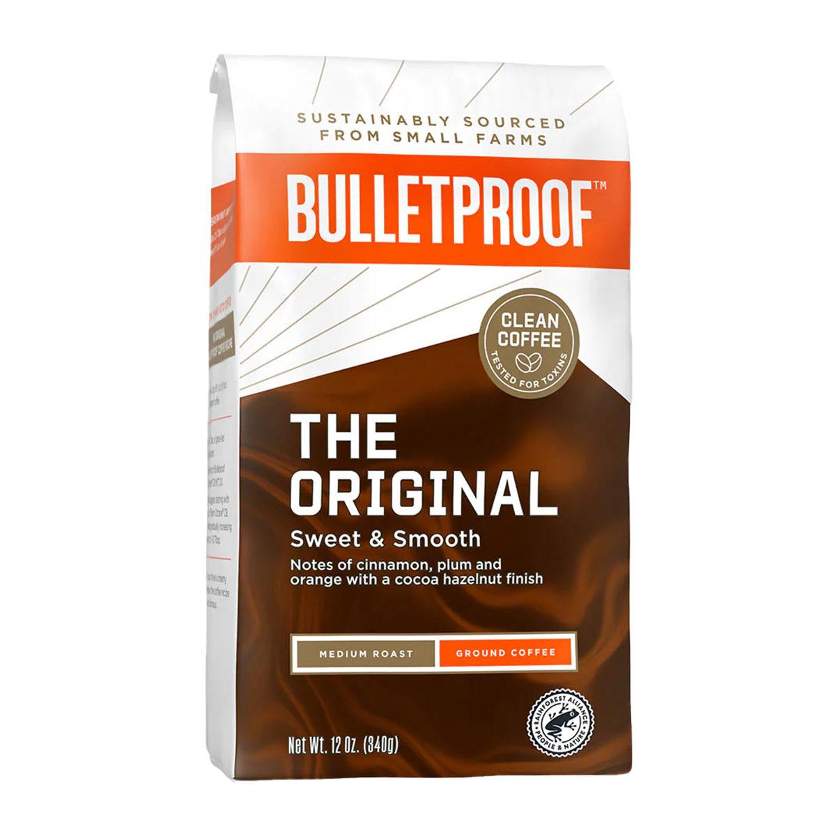 Start your day with Bulletproof Original roast. This clean, medium roast coffee is tested for toxins and features distinct notes of cinnamon, plum and orange with a cocoa hazelnut finish.