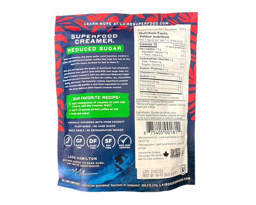 When our founder, big-wave surfer Laird Hamilton created a coffee and superfood creamer combo that kept him out on the waves for hours, he knew he had to share it. Now, you can harness the power of functional fuel whenever (and wherever) you need it with our coconut-based Reduced Sugar Sweet & Creamy Superfood Creamer!