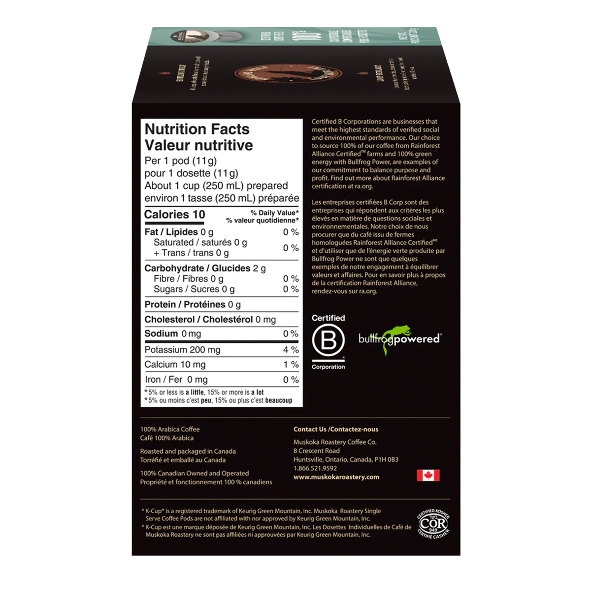 Rich, deep, well-rounded flavour and aroma, that captures the untamed spirit and natural beauty of Muskoka.