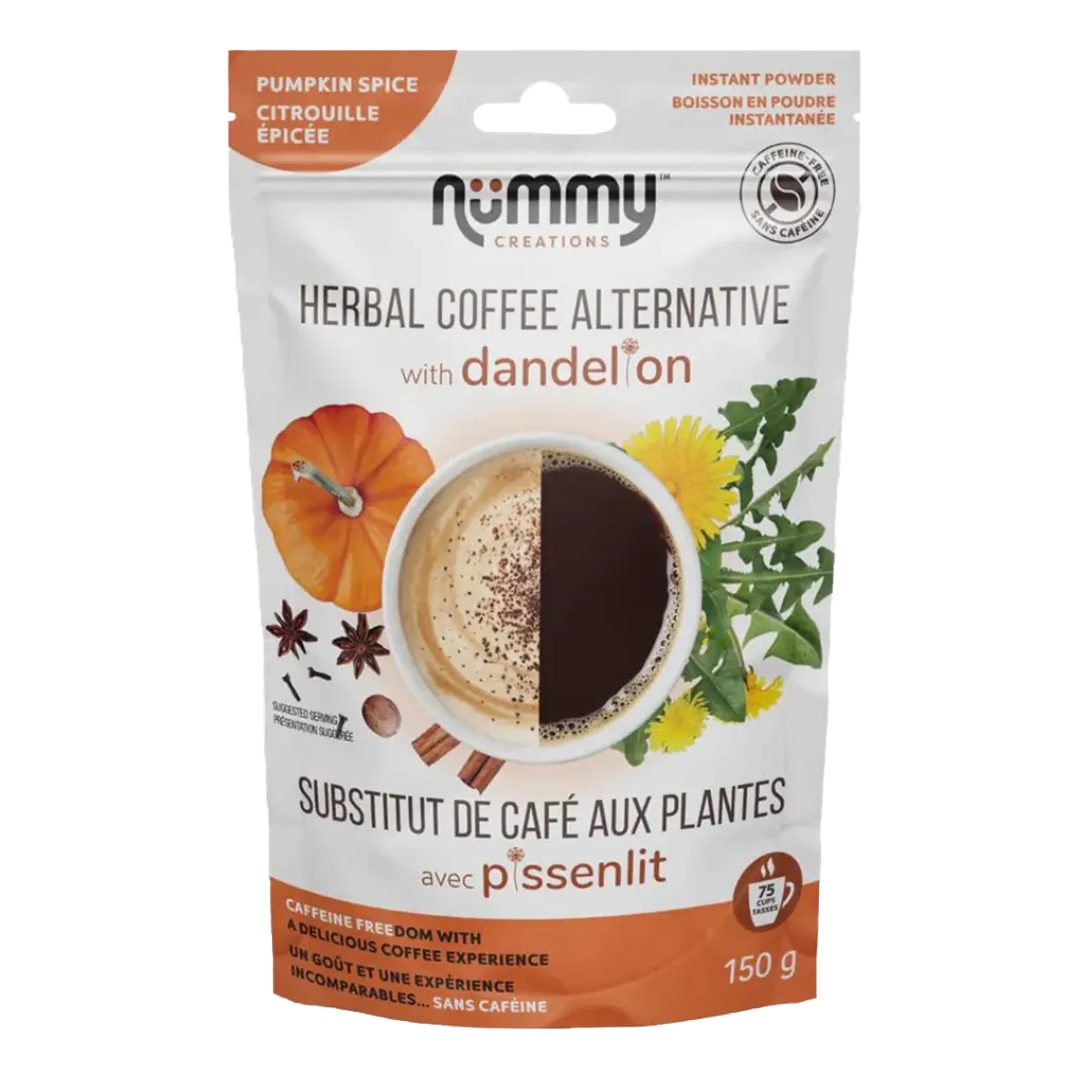 Finally, a caffeine-free pumpkin spice coffee alternative that actually tastes like coffee! 150 grams of instant powder that dissolves in hot or cold water. Enjoy this pumpkin spice drink any time and reap the benefits of caffeine freedom. So much better than a decaffeinated coffee.