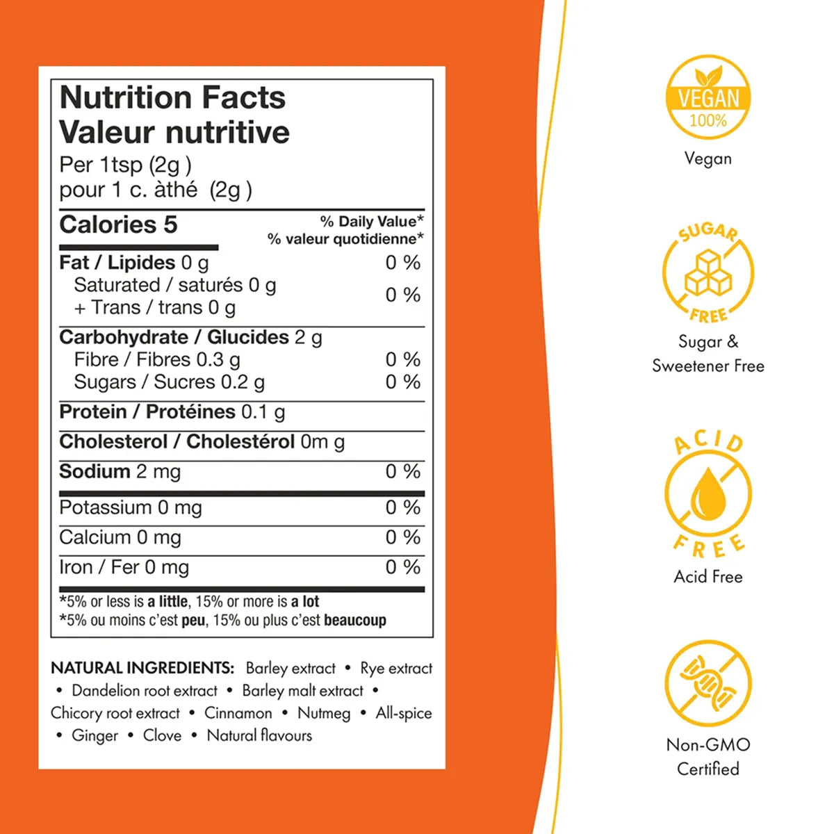 Barley extract, Rye extract, Dandelion root extract, Barley malt extract,Chicory root extract, Cinnamon, Nutmeg All-spice, Ginger, Clove,Natural flavours.