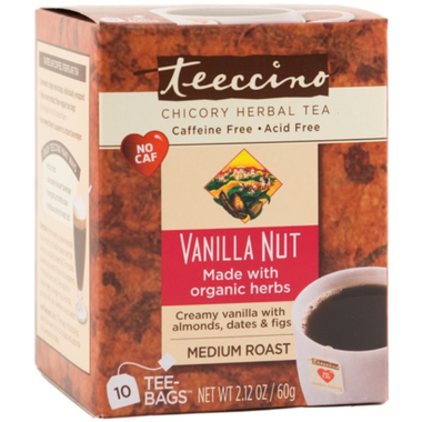 Teeccino Caffe Chicory Herbal Tea Vanilla Nut 10 Tea Bags