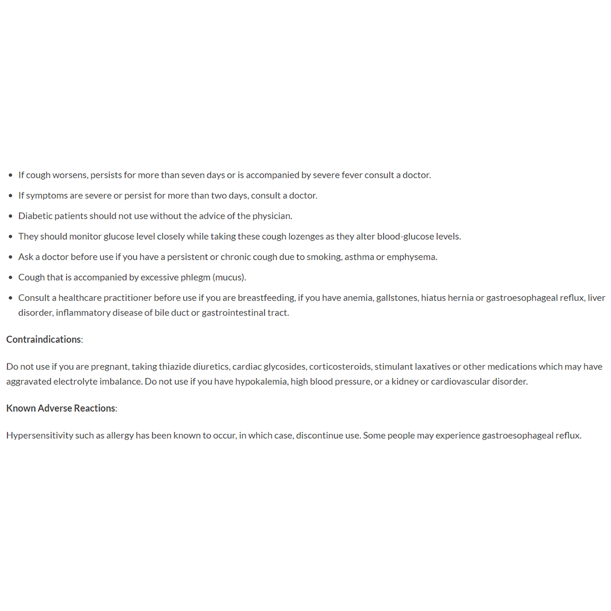 Diabetic patients should not use without the advice of the physician. They should monitor glucose level closely while taking these cough lozenges as they alter blood-glucose levels.