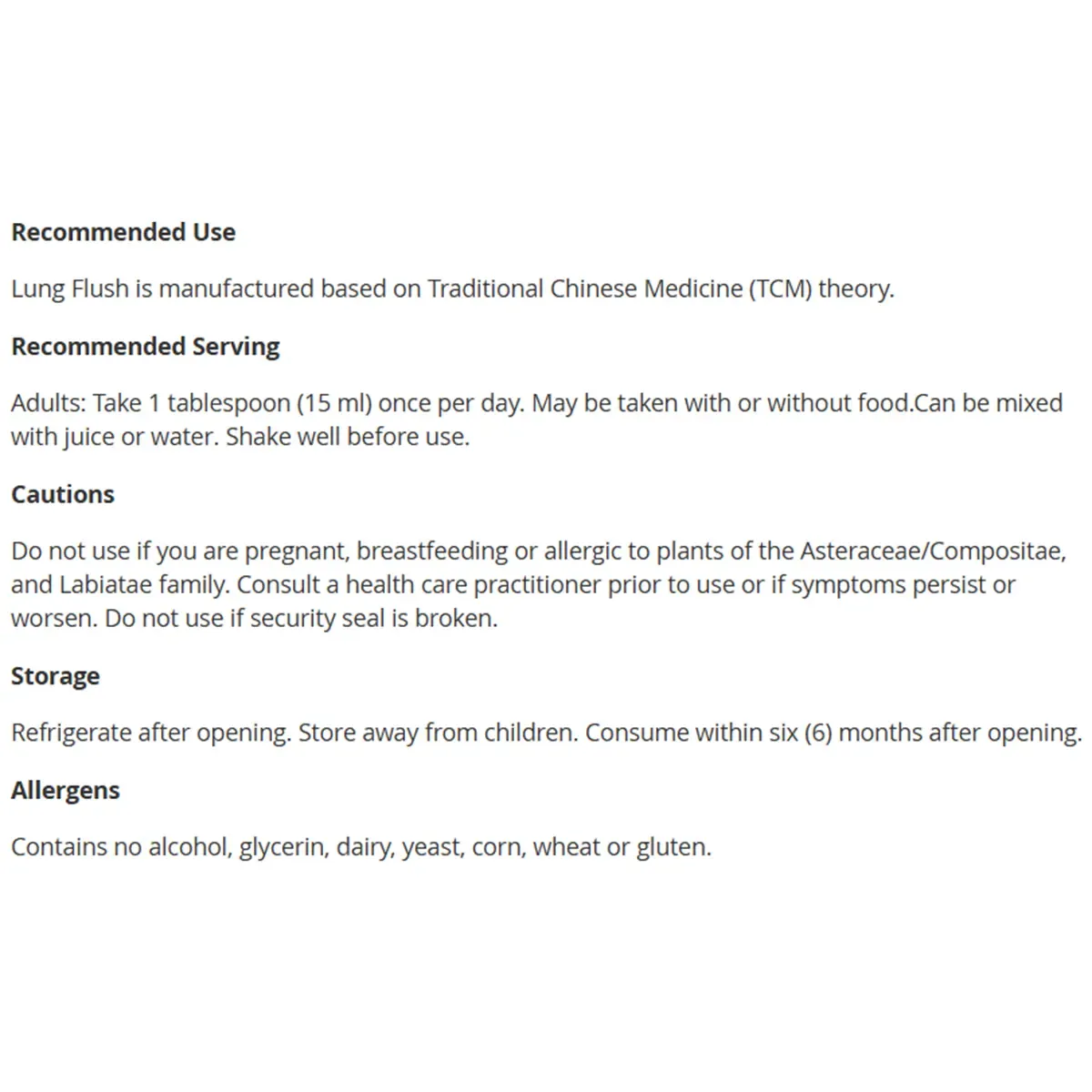 Lung Flush is manufactured based on Traditional Chinese Medicine (TCM) theory.