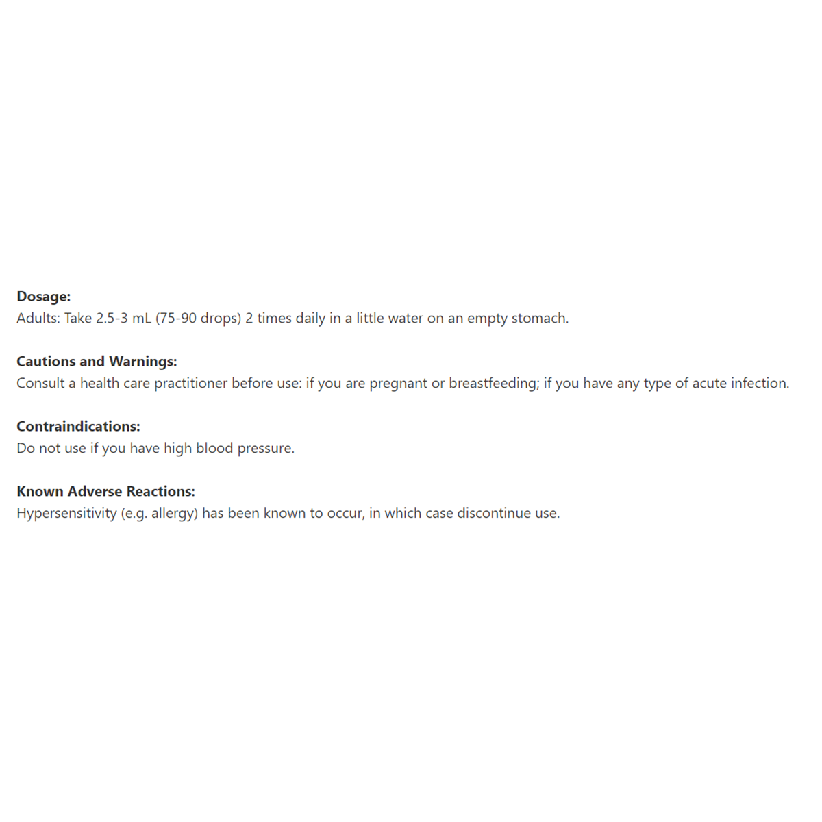 Adults: Take 2.5-3 mL (75-90 drops) 2 times daily in a little water on an empty stomach.