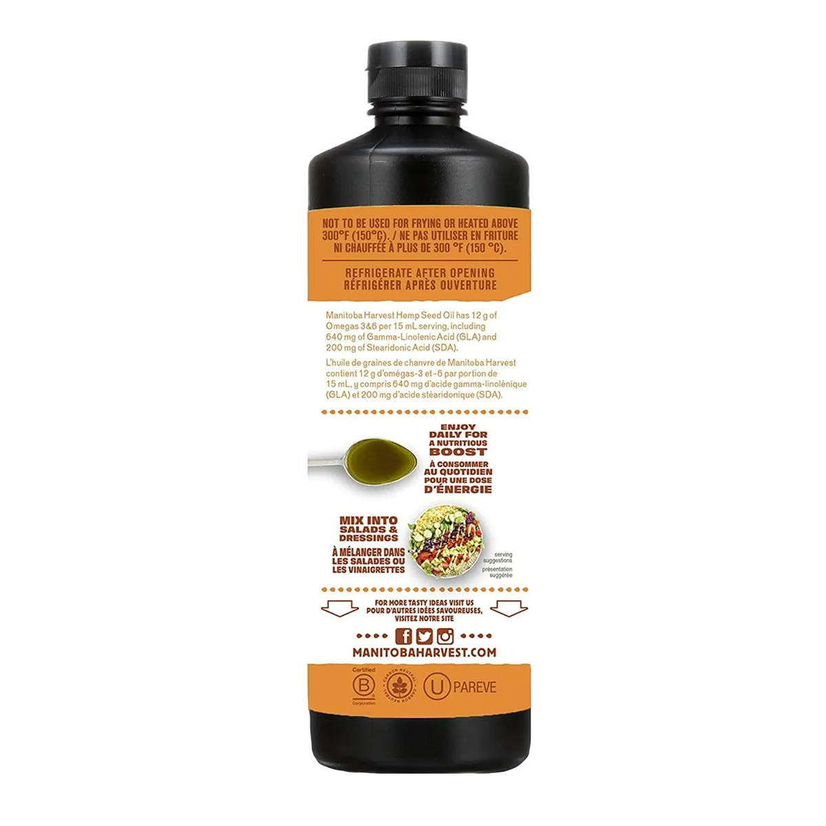 Every serving of Manitoba Harvest Hemp Seed Oil brings a delicious nutty flavor and 12 grams of Omegas 3 & 6 to any meal. Try adding it to dressings, sauces, and dips, or finish off your dishes with a light drizzle. For quick and easy use as a supplement, take a tablespoon directly for a tasty and convenient way to get your Omegas.