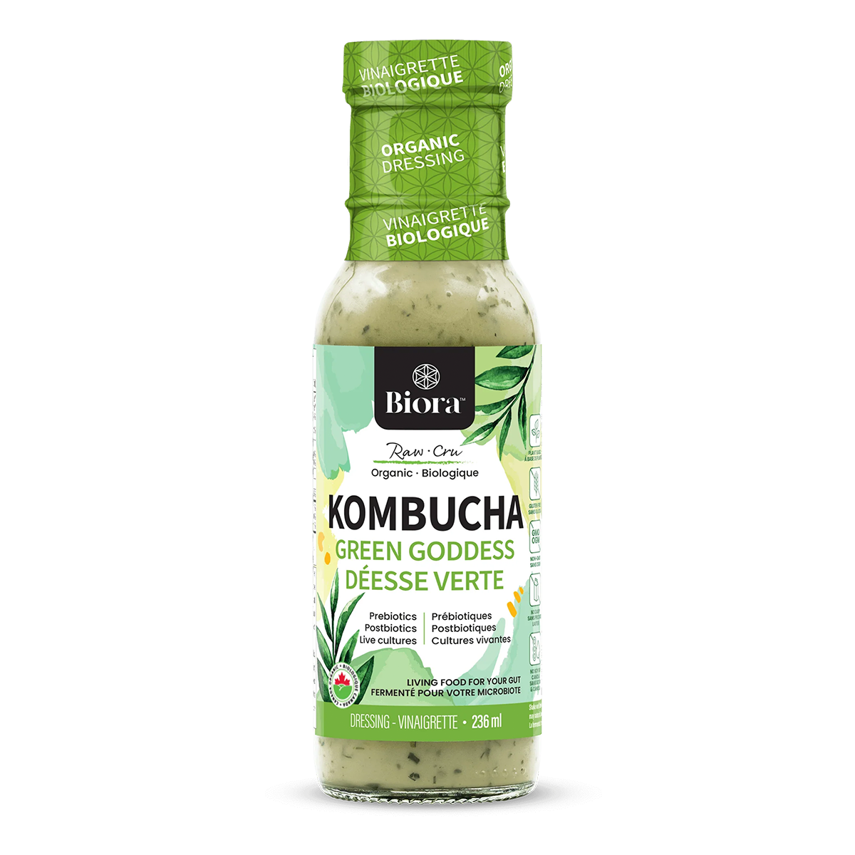 Discover the invigorating taste of Biora's Kombucha Green Goddess Dressing, loaded with fermented black tea, fermented holy basil, and fermented peppermint to create a delectable, tangy dressing that will transform any meal.