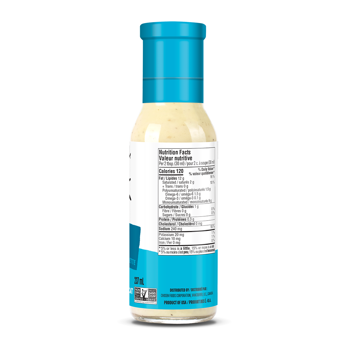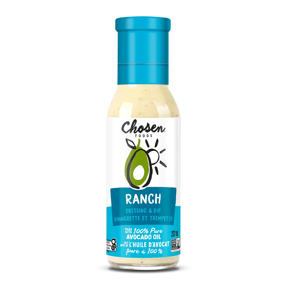 Chosen Foods Ranch Dressing is creamy, tangy and classic. With organic buttermilk, vinegar, dijon mustard, lemon juice, spices, and a dash of sea salt, this must-have recipe is tied together in a beautiful base of pure avocado oil.