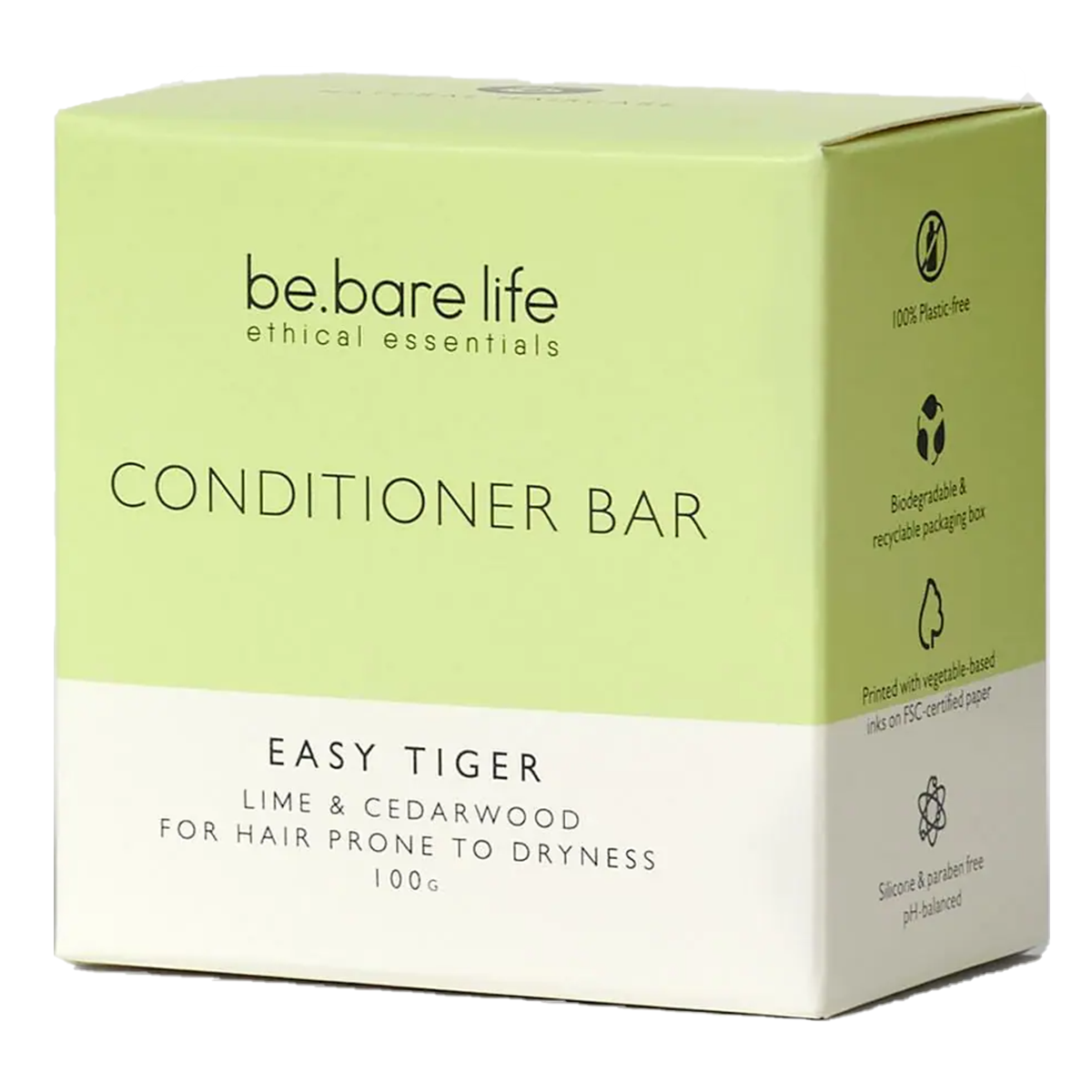 Key lime pie meets summer walks in the forest… that’s our Easy Tiger for you: delightfully zesty & tangy with a warm, woody base note. This bar glides effortlessly over the hair, releasing a rich & luxurious conditioning paste packed with a powerful combination of moisturising plant derivatives & pro-vitamin B5 to detangle, smooth & nourish thirsty locks.
