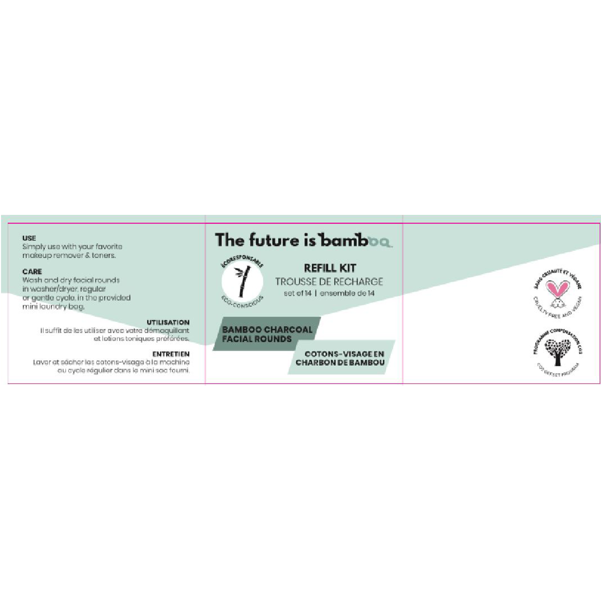 The Future Is Bamboo Refill Kit includes 14 Bamboo Charcoal Facial Rounds and a mini cotton mesh laundry bag.