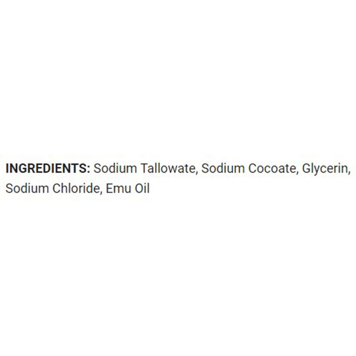 Sodium Tallowate, Sodium Cocoate, Glycerin, Sodium Chloride, Emu Oil.