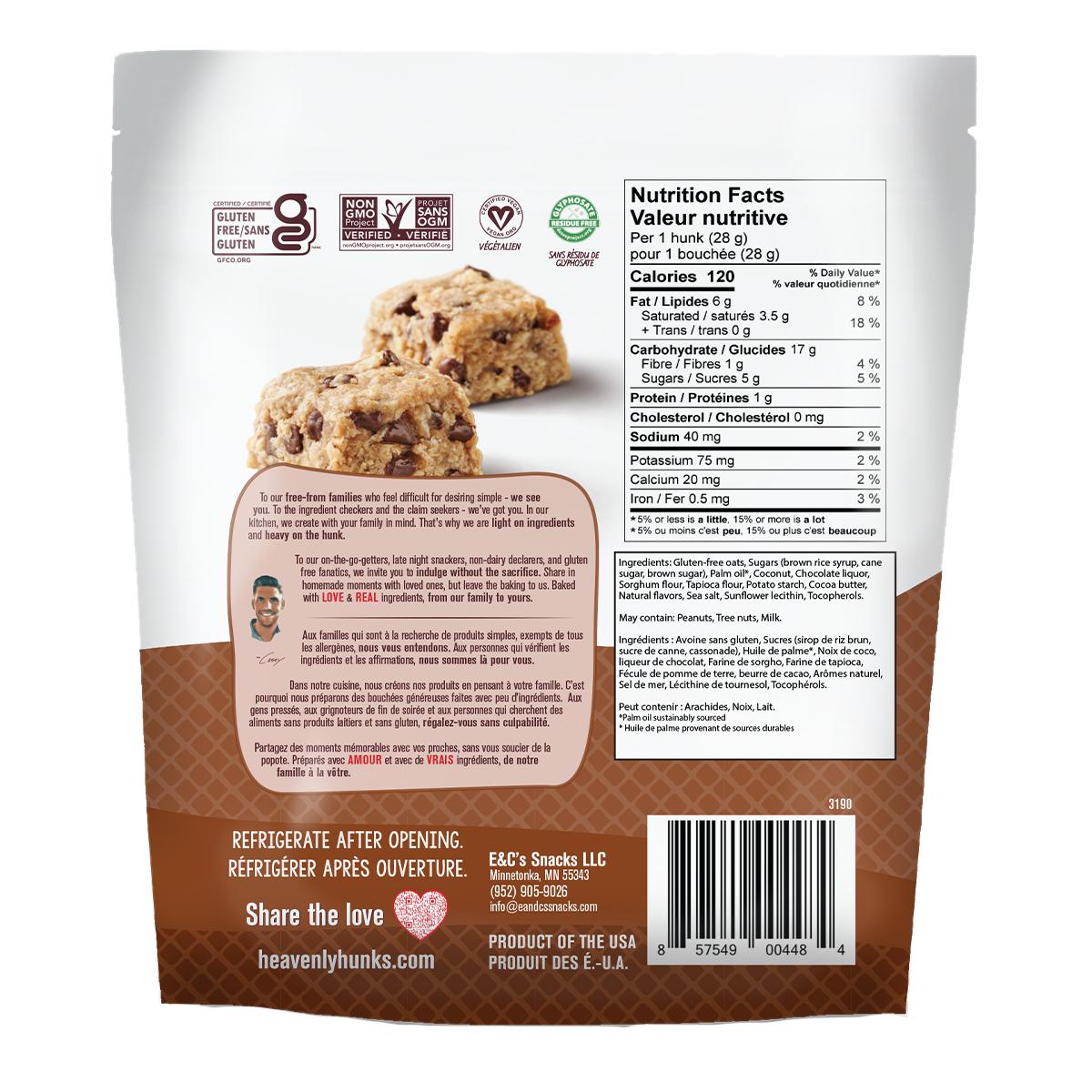 Don’t get locked out of heaven! Try this heavenly oatmeal chocolate chip hunks for a divine, and heavenly experience. This delicious all-natural, gluten-free oatmeal chocolate chip bites are baked with love and real ingredients. These cookies are dairy free, vegan, and non-GMO project certified. These cookies are quite the hunk (if you ask us). And, one bite is all it takes to fall in love with them!