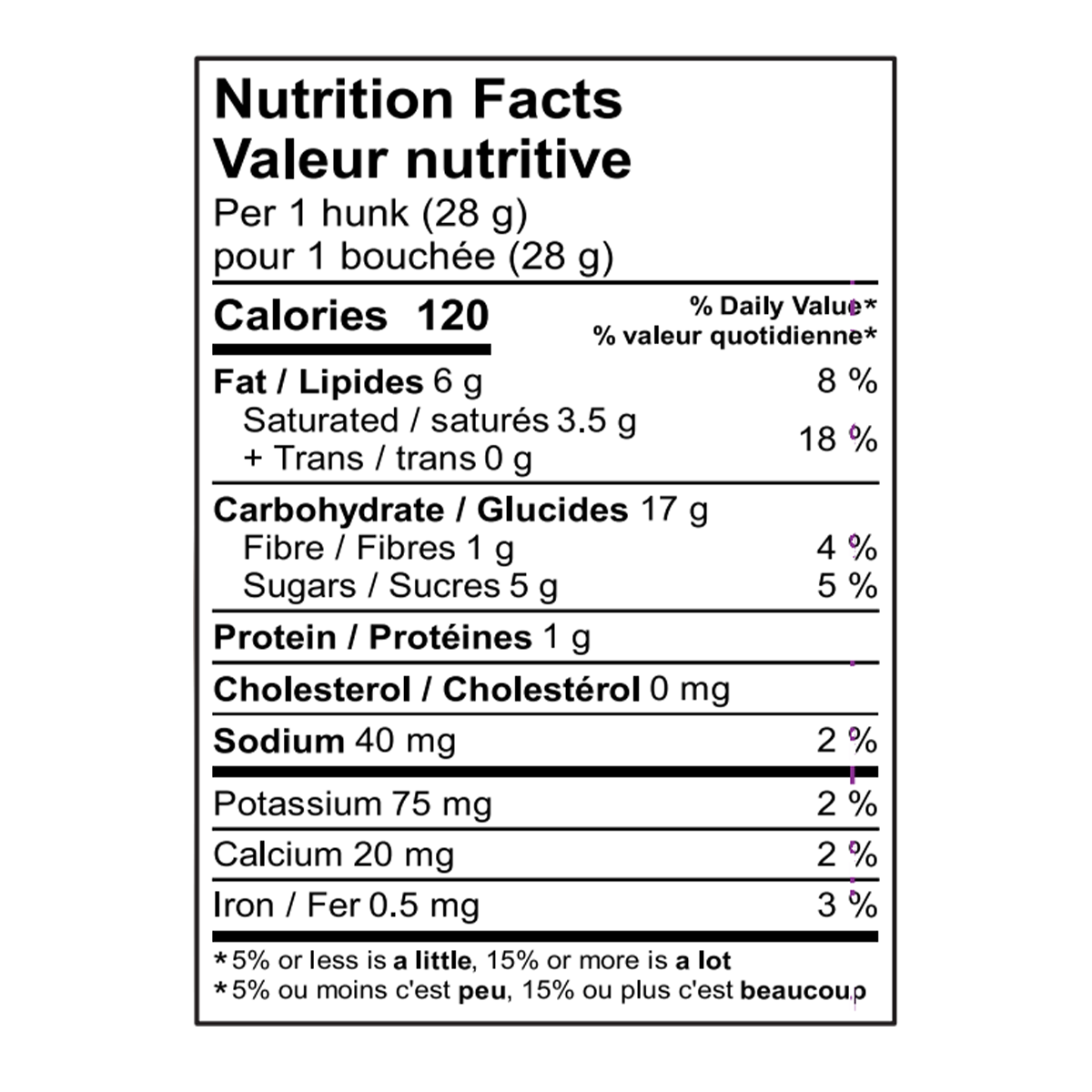 Gluten-free oats, Sugars (brown rice syrup, cane sugar, brown sugar), Palm oil*, Coconut, Chocolate liquor, Sorghum flour, Tapioca flour, Potato starch, Cocoa butter, Natural flavours, Sea salt, Sunflower lecithin, Tocopherols.