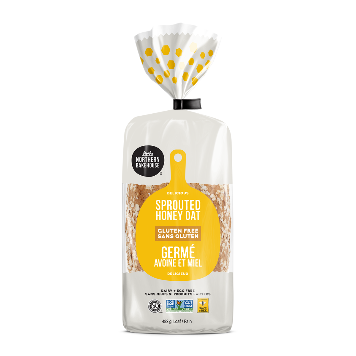 Water, Gluten-free flour blend (modified tapioca starch, corn starch, potato starch), Sugars (cane sugar, honey, raisin juice), Sprouted grain blend (sprouted brown rice flour, gluten-free sprouted rolled oats), Sunflower oil, Psyllium husk, Yeast, Modified cellulose, Pea hull fibre, Vinegar, Salt, Rice bran, Cellulose gum, Cultured cane sugar, Enzymes.