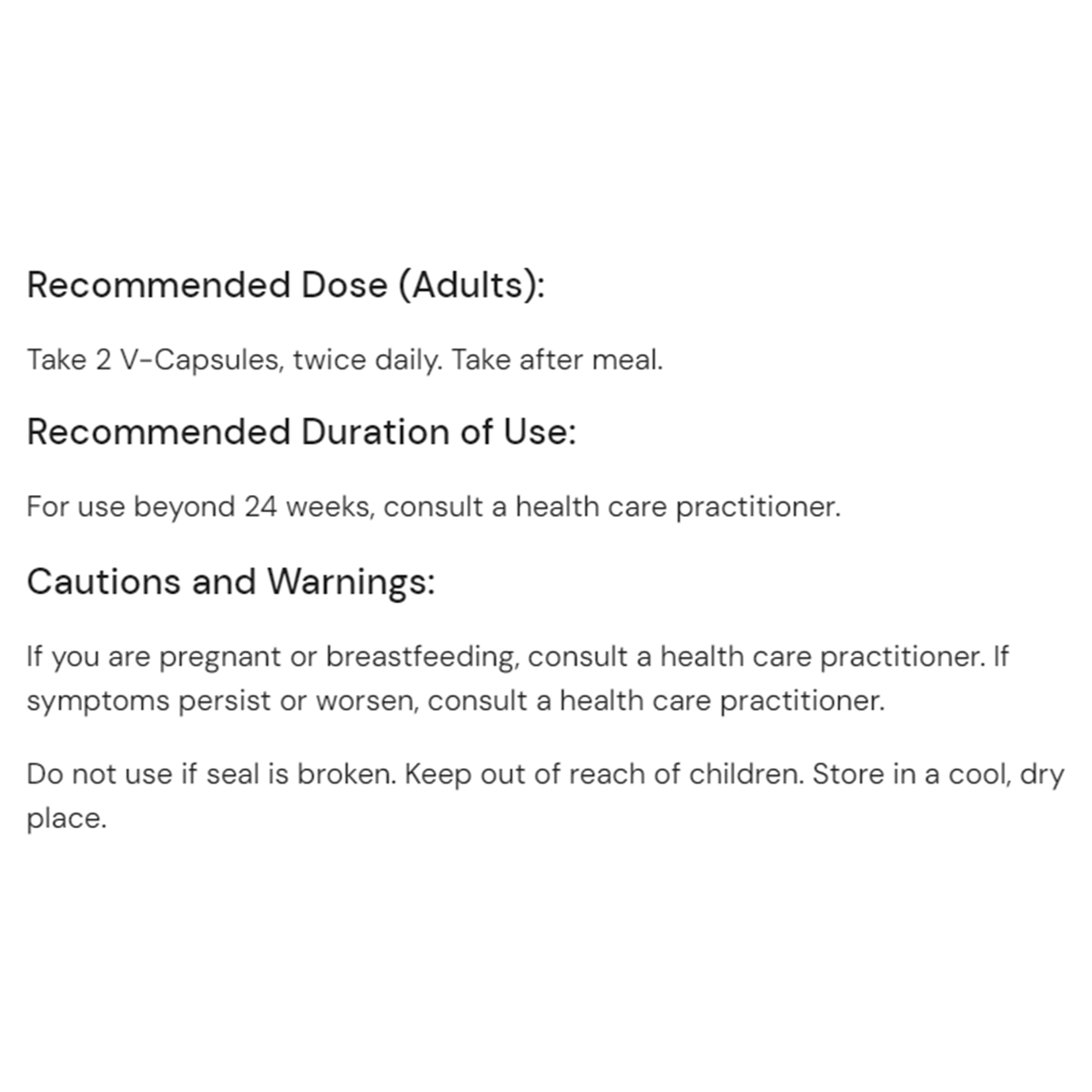 (Adults): Take 2 V-Capsules, twice daily. Take after meal.