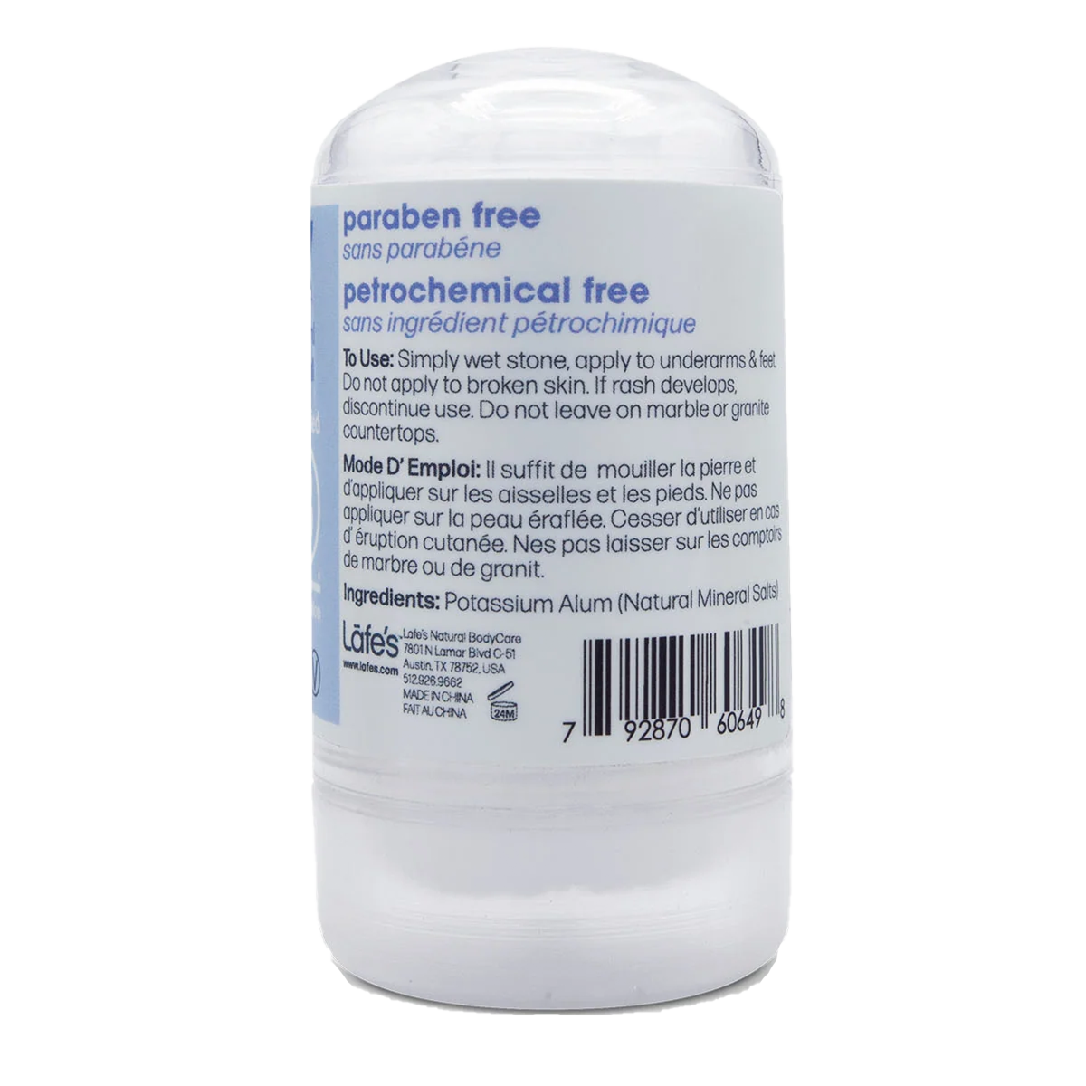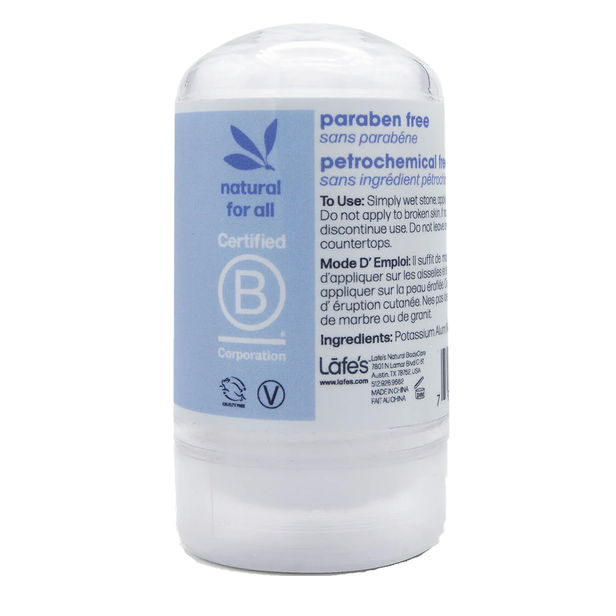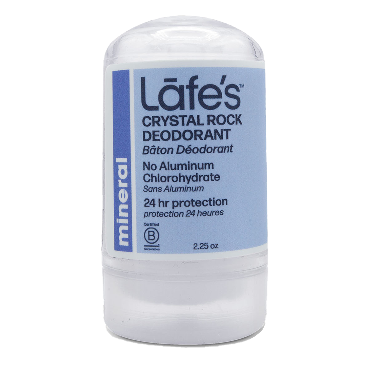 Lafe's Crystal Rock Salt Mini Mineral Deodorant Stick, designed for travel convenience, contains only one ingredient: natural mineral salts. It is Aluminum-Free (no aluminum chlorohydrate) and free from toxins. Mineral salt deodorants are renowned for their ability to naturally eradicate odor-causing bacteria for 24 hours. This compact travel-sized package ensures easy portability of the crystal stone deodorant while safeguarding it from breakage.