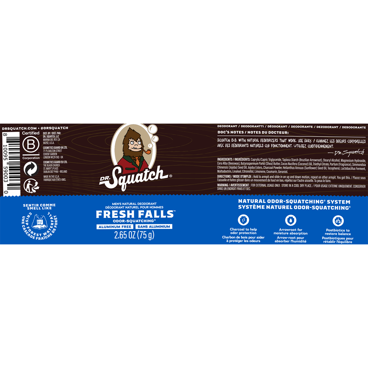 Dr. Squatch Men's Natural Deodorant Fresh Falls 75g