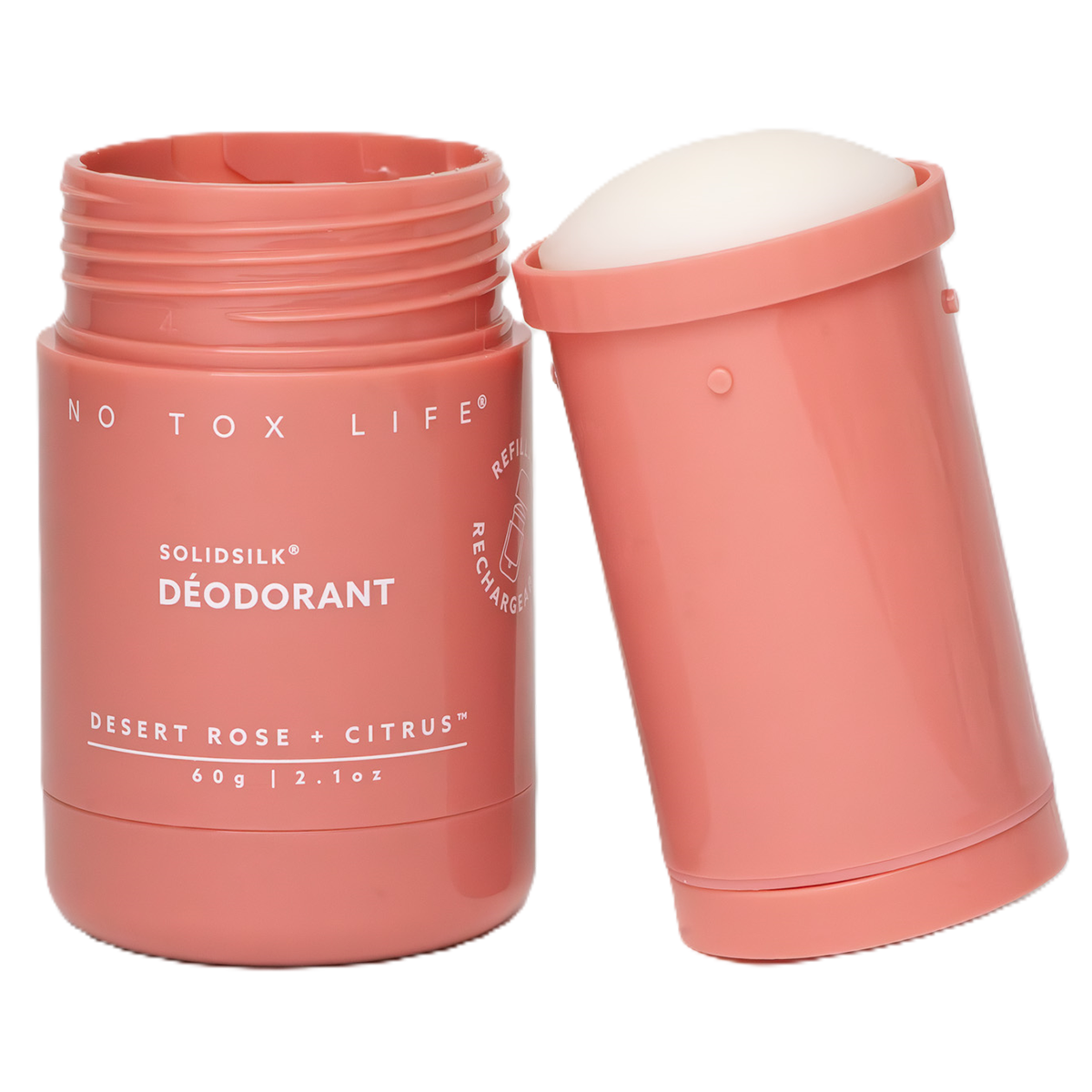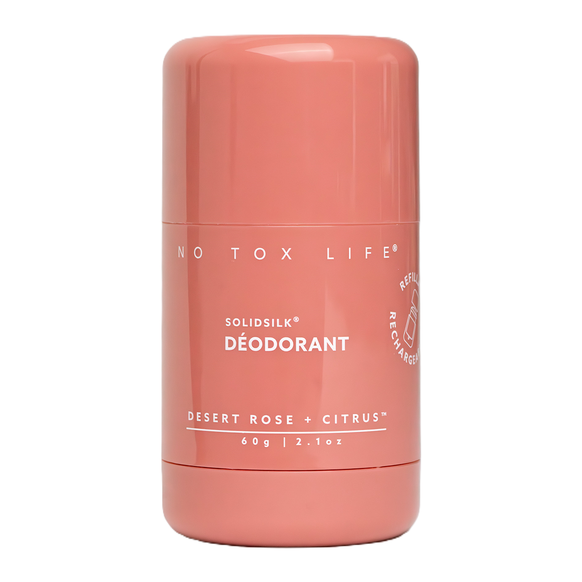 No Tox Life SOLIDSILK Refillable Deodorant in Desert Rose + Citrus: a sweet citrus blend with delicate floral notes.