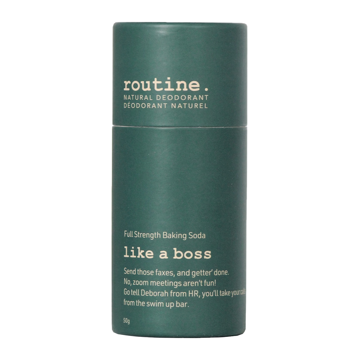 A 50g routine deodorant in stick format (a combination of compostable cardboard and 100% post consumer recycled plastic). If you like piña colada, eating cake in the rain, sleeping in ‘stead of yoga and your Papi’s champagne.