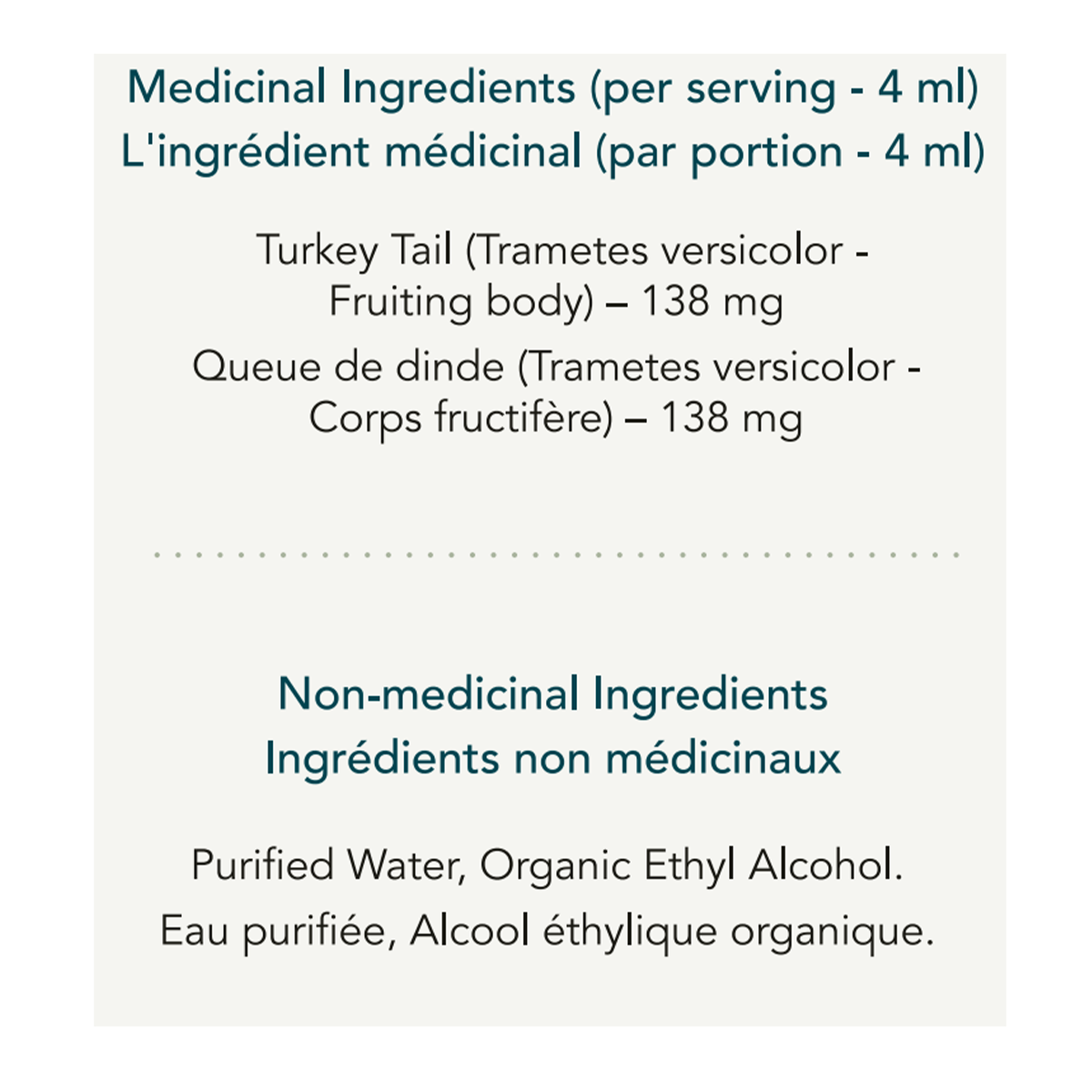 Stay well all year long with Turkey Tail mushrooms! This powerful mushroom promotes immune health, nourishes healthy bacteria in the gut, and is rich with antioxidants that combat cellular stress. This product contains alcohol. Our alcohol-based tincture has an earthy, potent flavour.