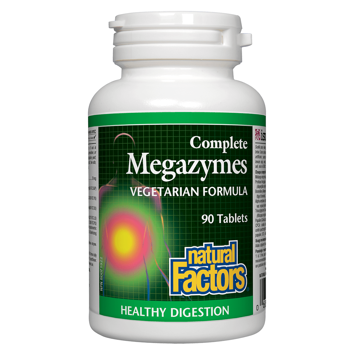 Natural Factors Complete Megazymes is a comprehensive digestive enzyme formula designed to assist and enhance healthy digestion. This vegetarian-friendly, non-GMO formula features natural proteases, amylase, lipase, bromelain, and papain to Assist the body break down proteins, carbohydrates, and fats, Aid healthy digestion and improve nutrient absorption.