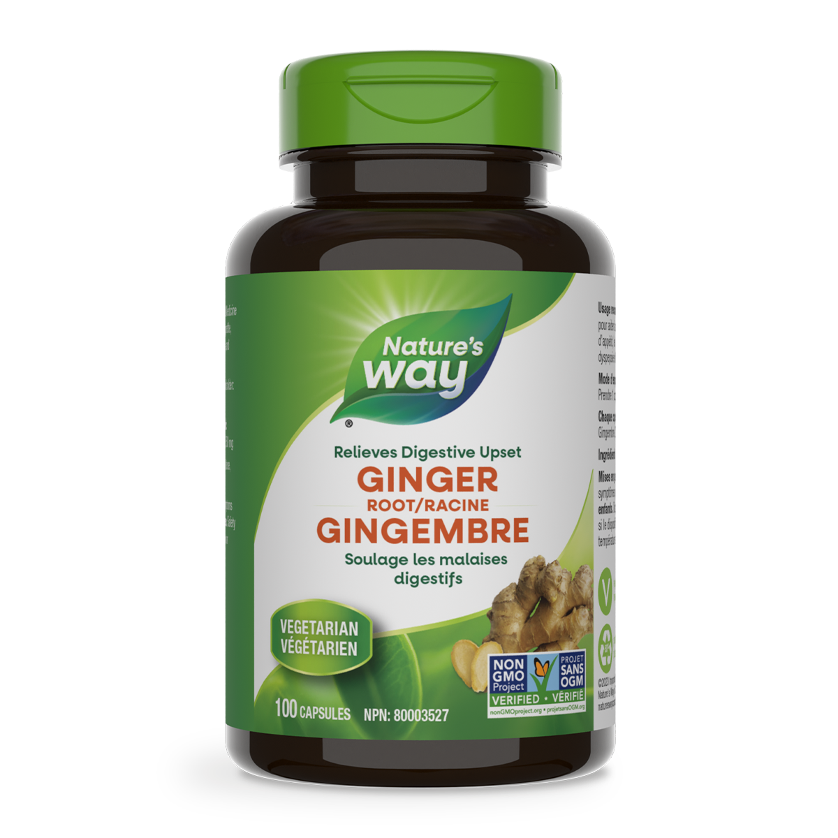 Nature's Way Ginger Root is traditionally used in herbal medicine to Assist relieve digestive upset including lack of appetite, nausea, digestive spasms, indigestion, dyspepsia, and flatulent colic. Nature's Way Ginger Root capsules are a convenient, easy to swallow Ginger Root supplement to provide digestive Aid, as well as Assisting to prevent nausea and vomiting associated with motion sickness and seasickness. 100% vegan, gluten free and Non-GMO Project verifiedis traditionally used in Herbal Medicine to Assist relieve digestive upset including lack of appetite, nausea, digestive spasms, indigestion, dyspepsia, and flatulent colic (carminative). Nature's Way Ginger Root is Vegetarian and Non-GMO Project Verified.