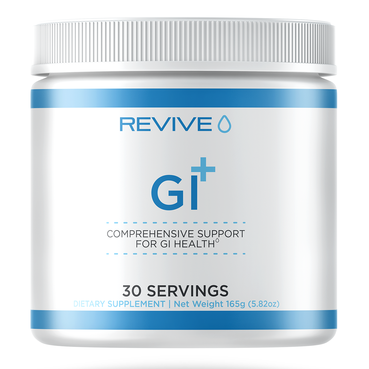 Revive Supplements GI+ is a natural supplement designed to Aid digestive health by promoting a healthy gut microbiome. This formula contains a blend of prebiotics, probiotics, and digestive enzymes that work together to Aid healthy digestion, nutrient absorption, and overall gut health.