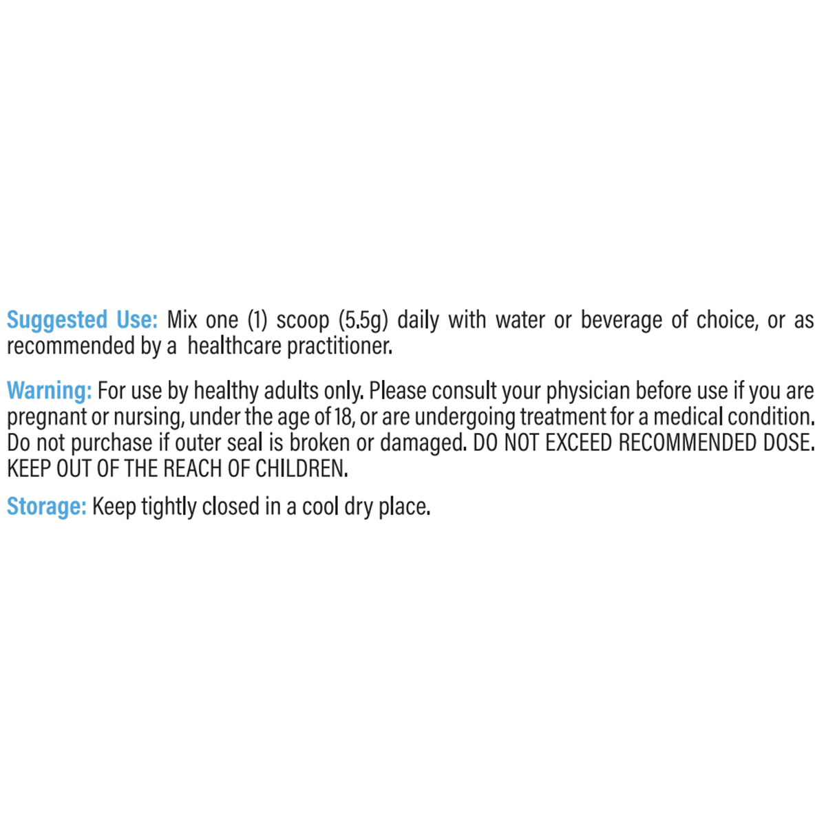 Mix one (1) scoop (5.5g) daily with water or beverage of choice, or as recommended by a healthcare practitioner.