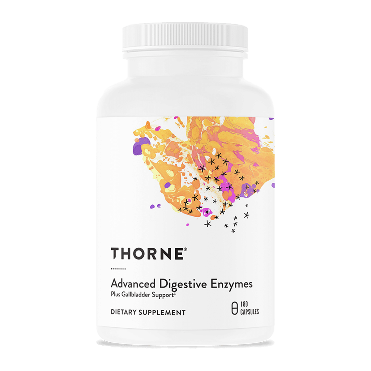 Thorne’s Advanced Digestive Enzymes is a comprehensive blend of digestive enzymes that Aid good digestion.* A digestive enzyme supplement can be beneficial in circumstances when less than optimal amounts of digestive enzymes are being produced in the body – like during the natural aging process or after gallbladder removal.*
