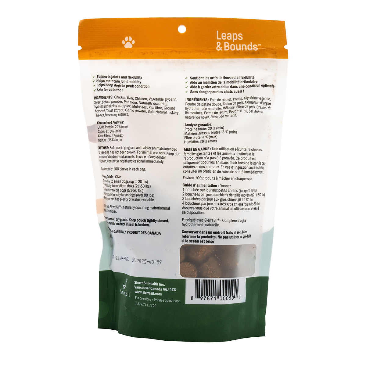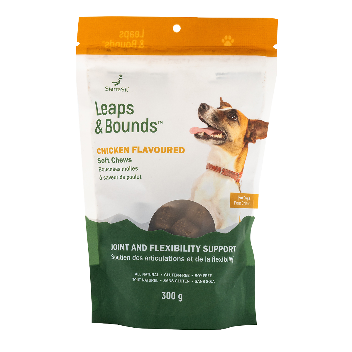 Leaps and Bounds is a quality-of-life-enhancing supplement for your dog whose main ingredient, SierraSil, is backed by quality research and proven efficacy for people. Best of all - they taste great!