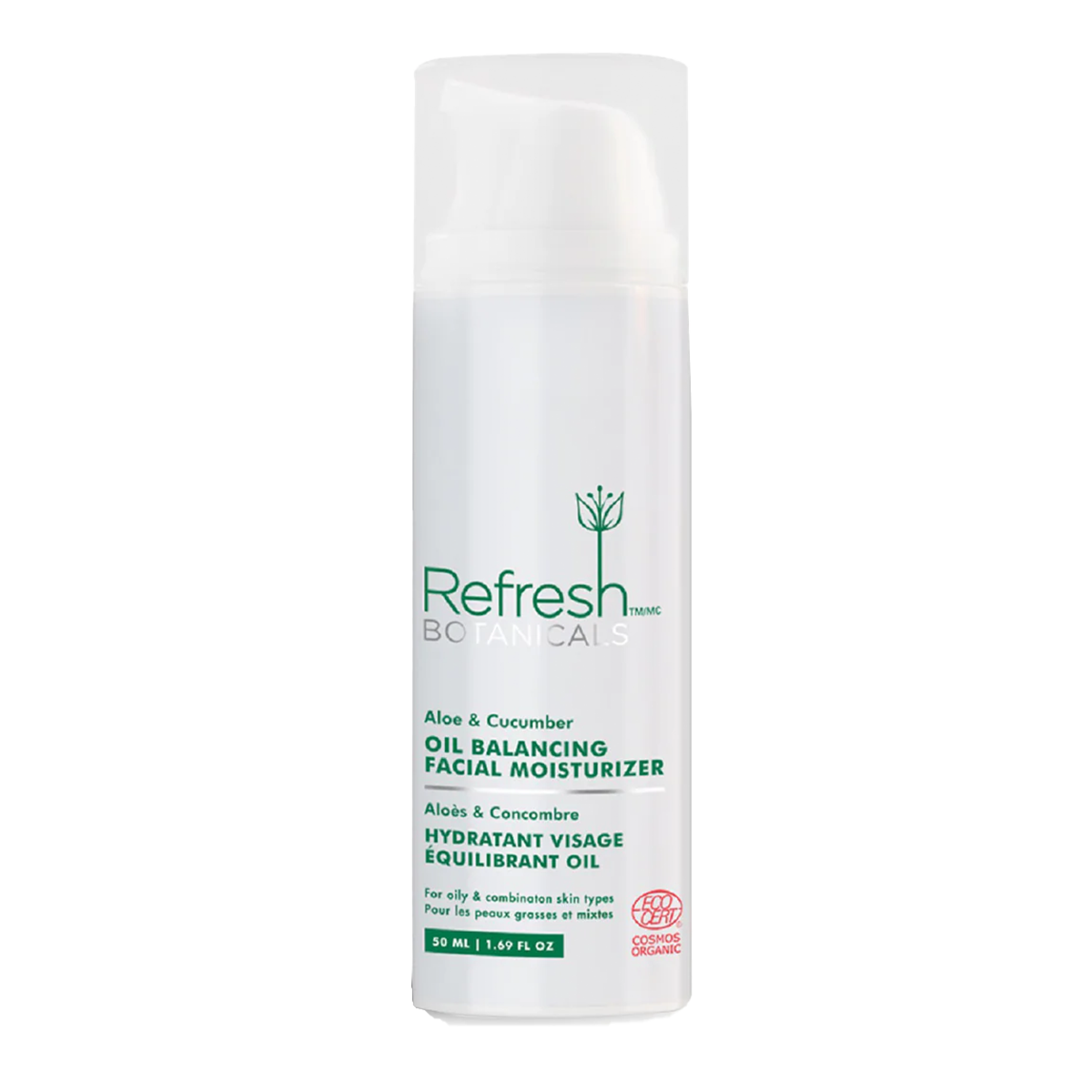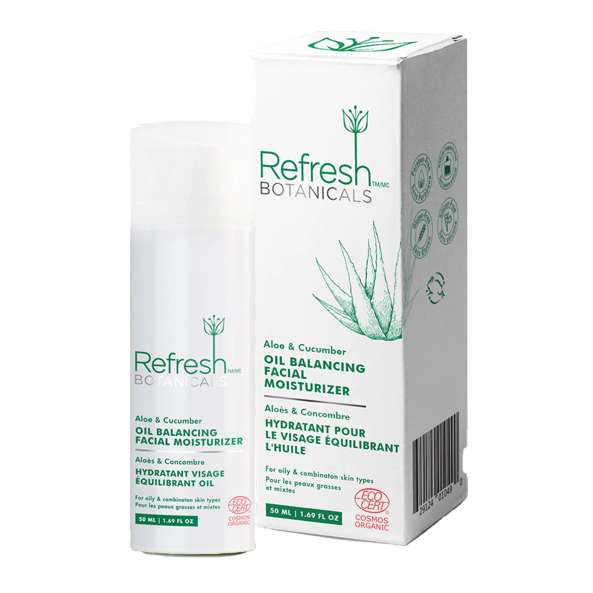 Refresh Botanicals Aloe Daily Facial Moisturizer is specially formulated for acne-prone skin. This highly popular natural facial moisturizer is a Canadian favorite, leaving the skin soothed and balanced. Our unique blend of aloe, cucumber extract, and cornflower water not only soothes and calms irritation but also diminishes the appearance of acne scarring.