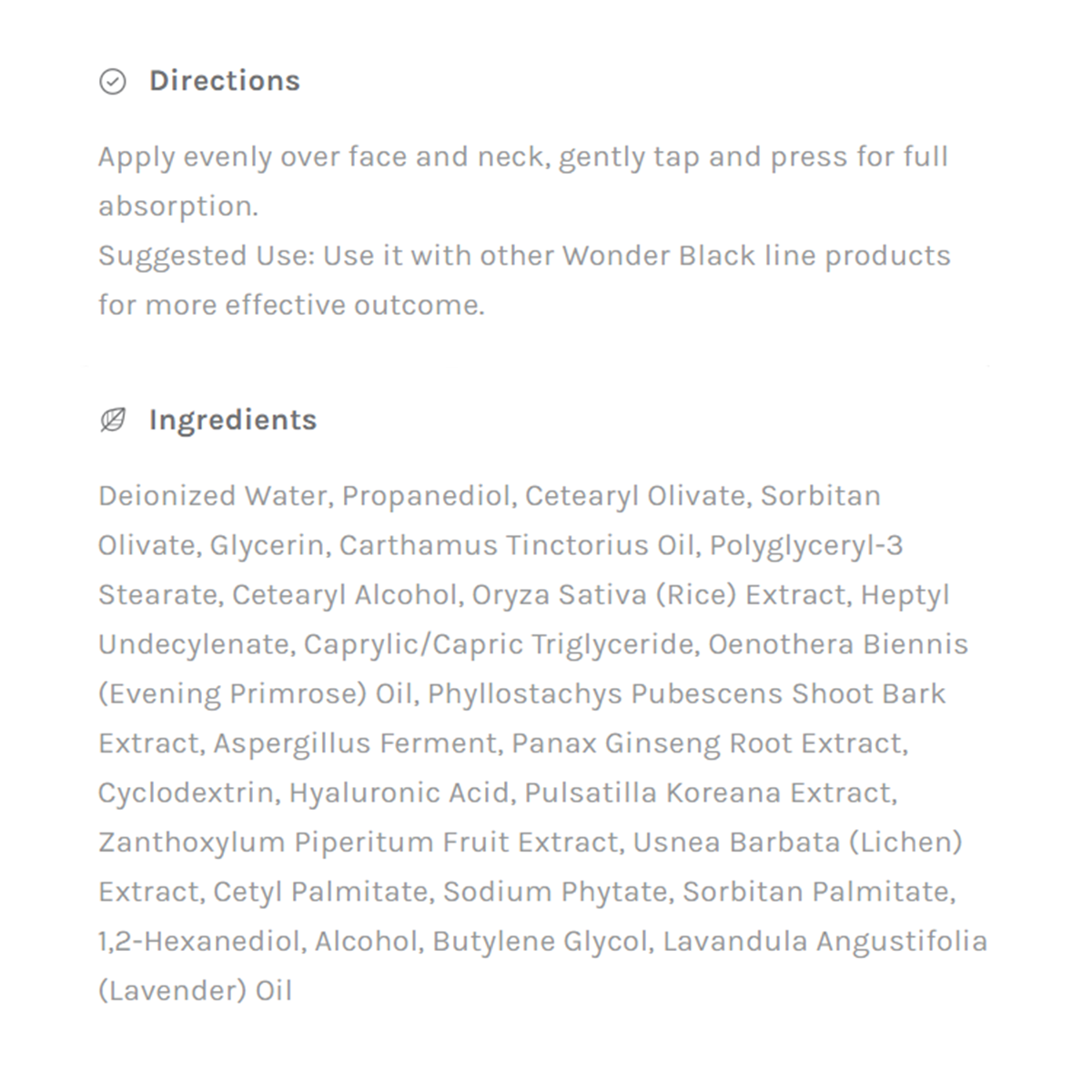 Suggested Use: Use it with other Wonder Black line products for more effective outcome.