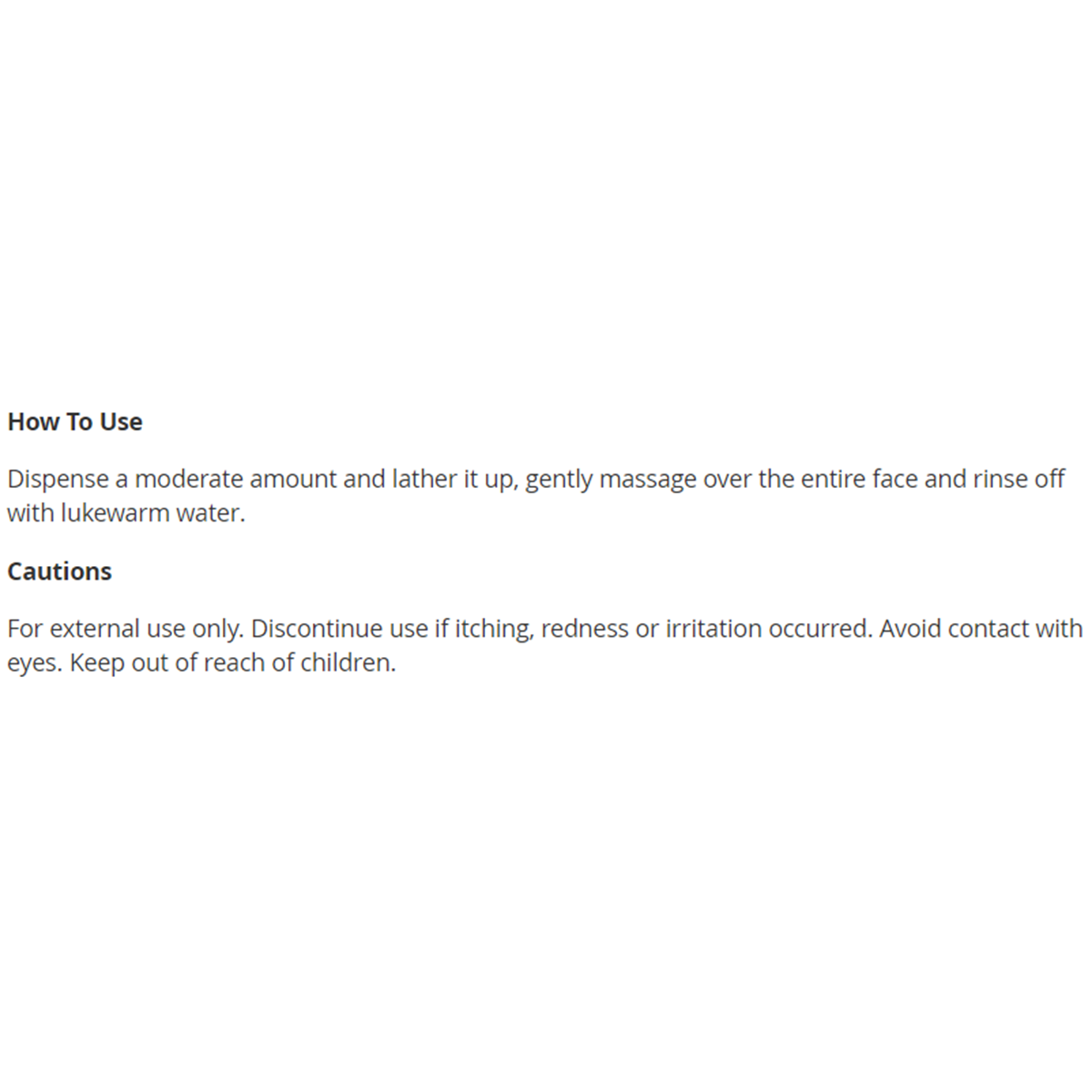 Dispense a moderate amount and lather it up, gently massage over the entire face and rinse off with lukewarm water.