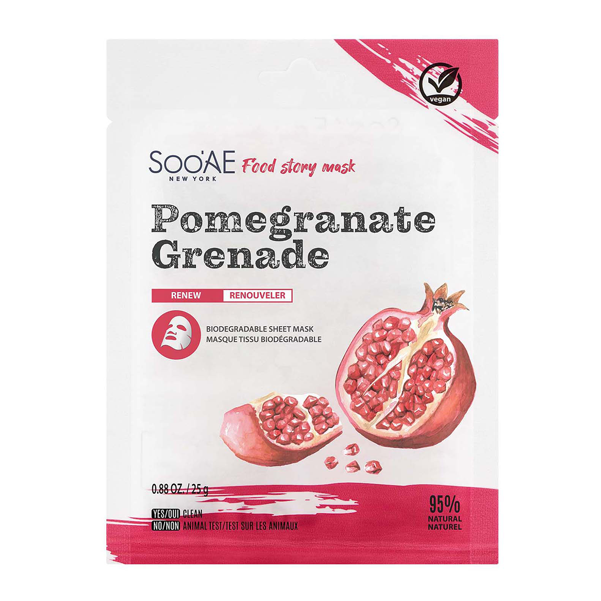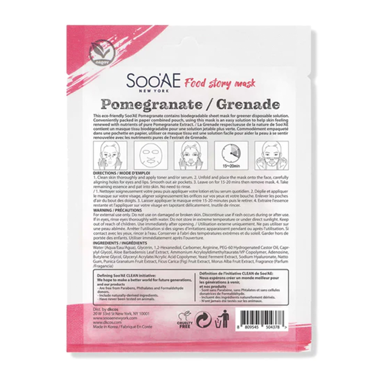 Enriched with a unique blend of ingredients that is convenient and functional for every skin type! This eco-friendly Soo’AE Pomegranate contains biodegradable sheet mask for greener disposable solution.