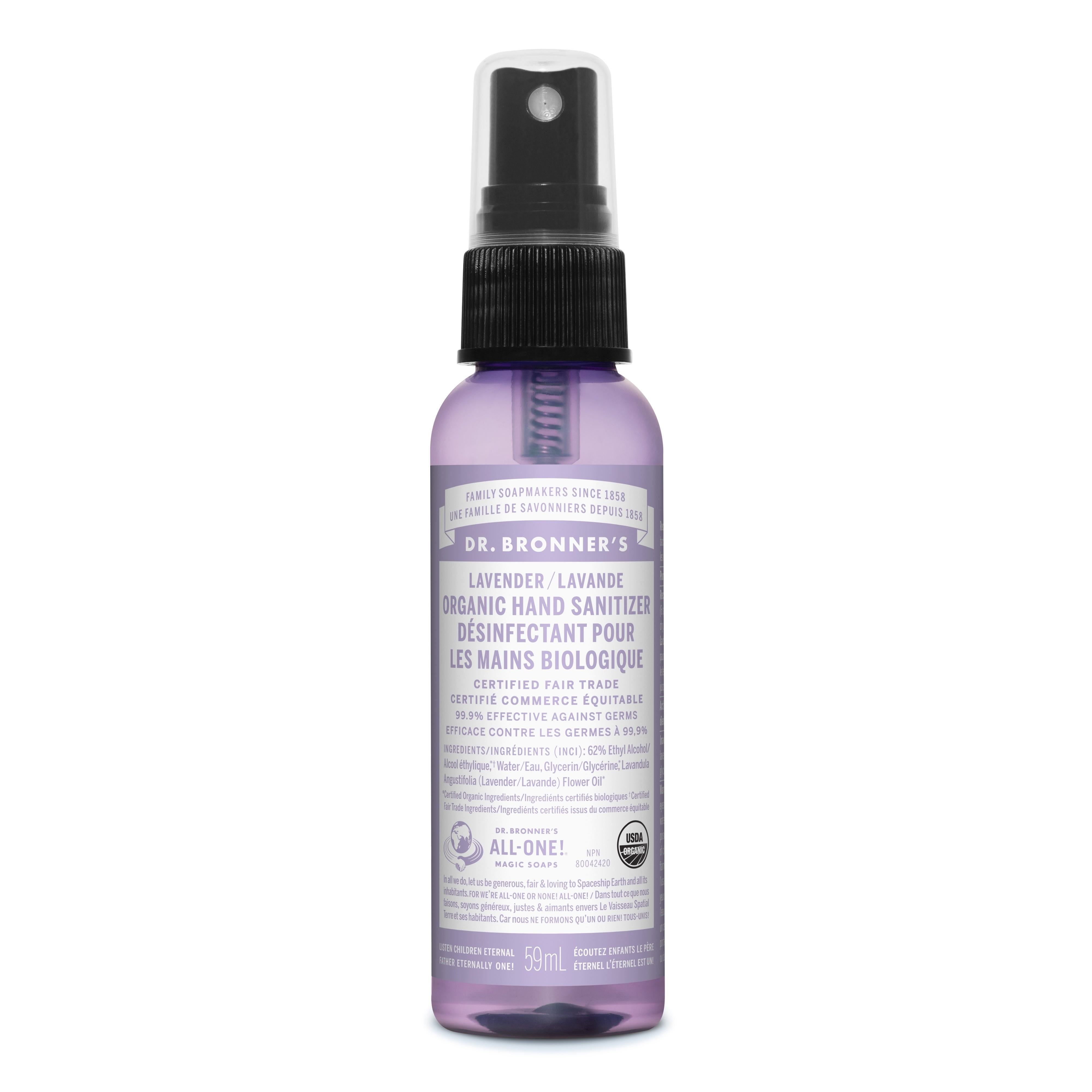 Dr. Bronner's Organic Hand Sanitizer Lavender 59mL