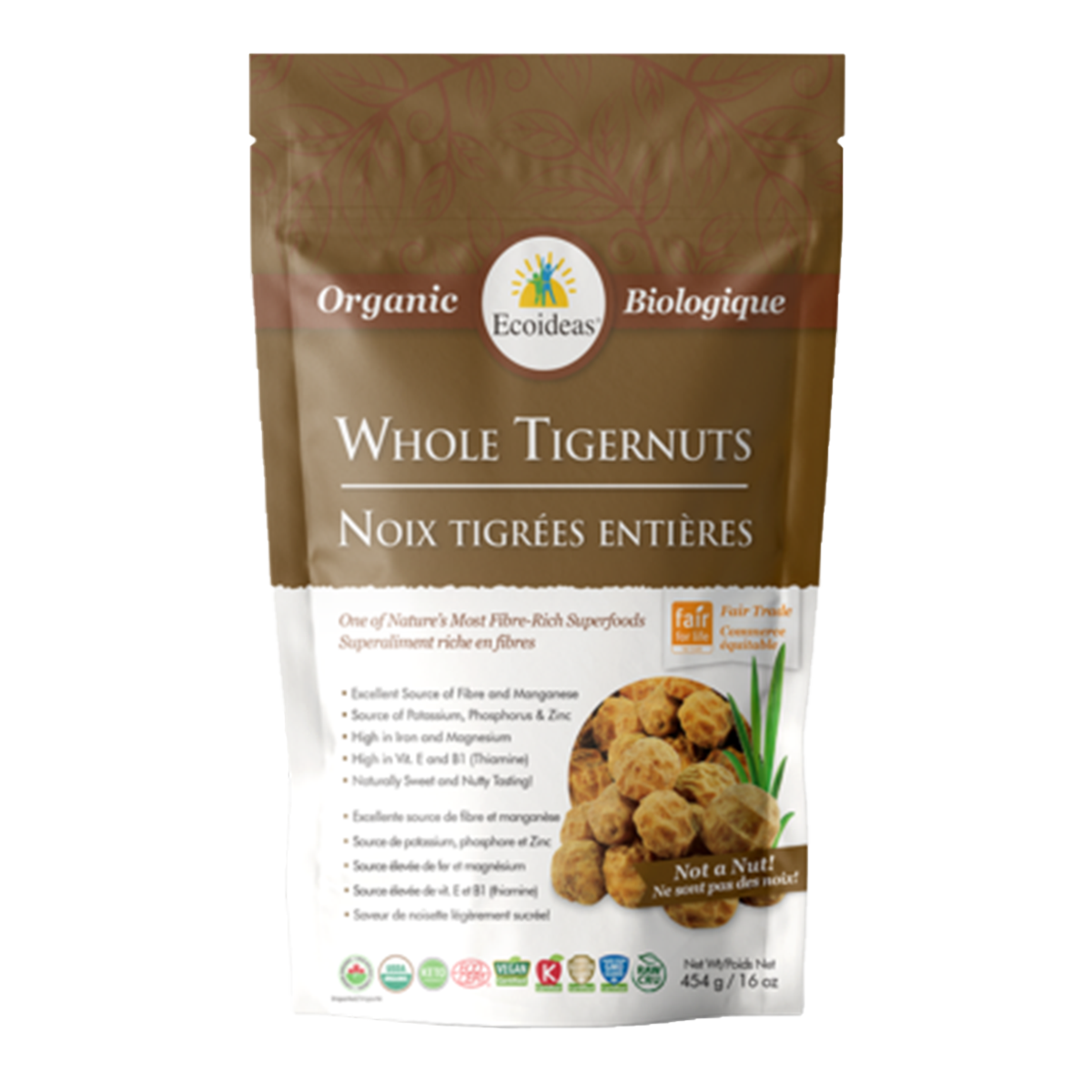They are one of nature’s highest sources of fibre at 41%. Their naturally sweet and earthy taste makes them the ideal appetite curbing snack. Tigernuts are also high in iron, phosphorus and magnesium.