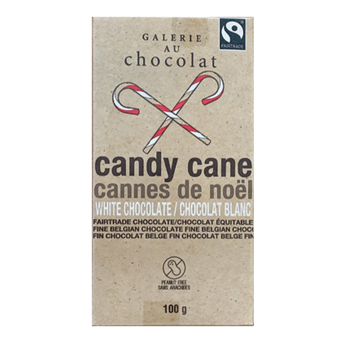 White & Dark Chocolate Candy Cane Bar by Galerie au Chocolat is Fair Trade certified and made in Canada with fine imported chocolate.