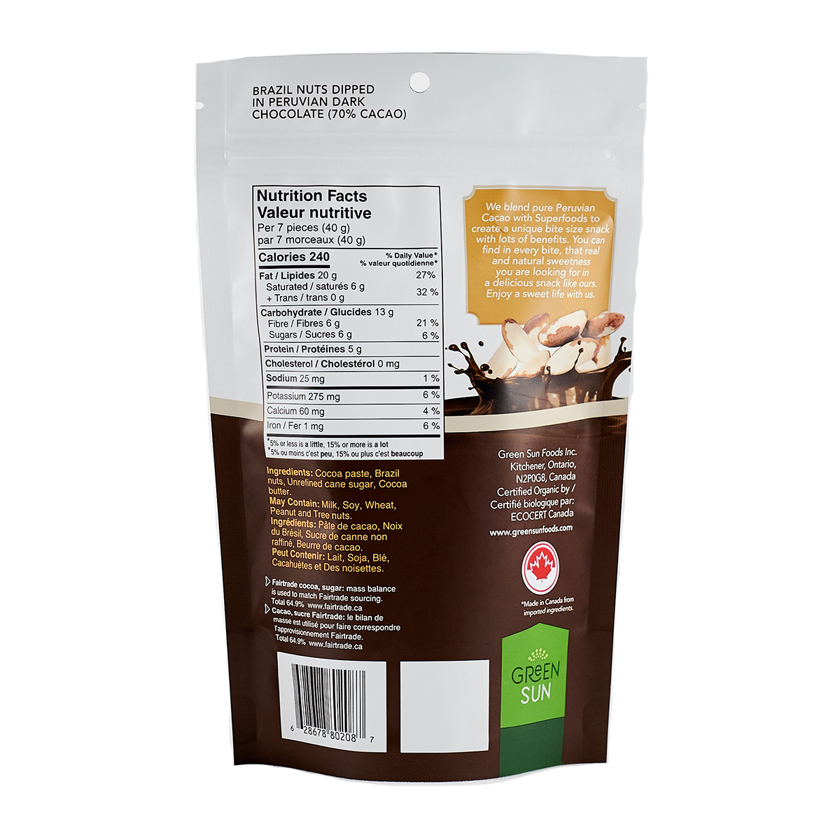 Green Sun Brazil Nuts Dark Chocolate Covered 91g