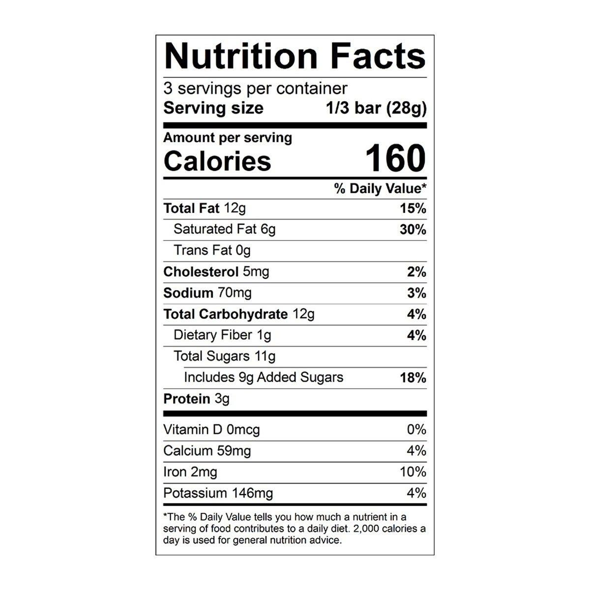 Serving size 1/3 bar (28g)