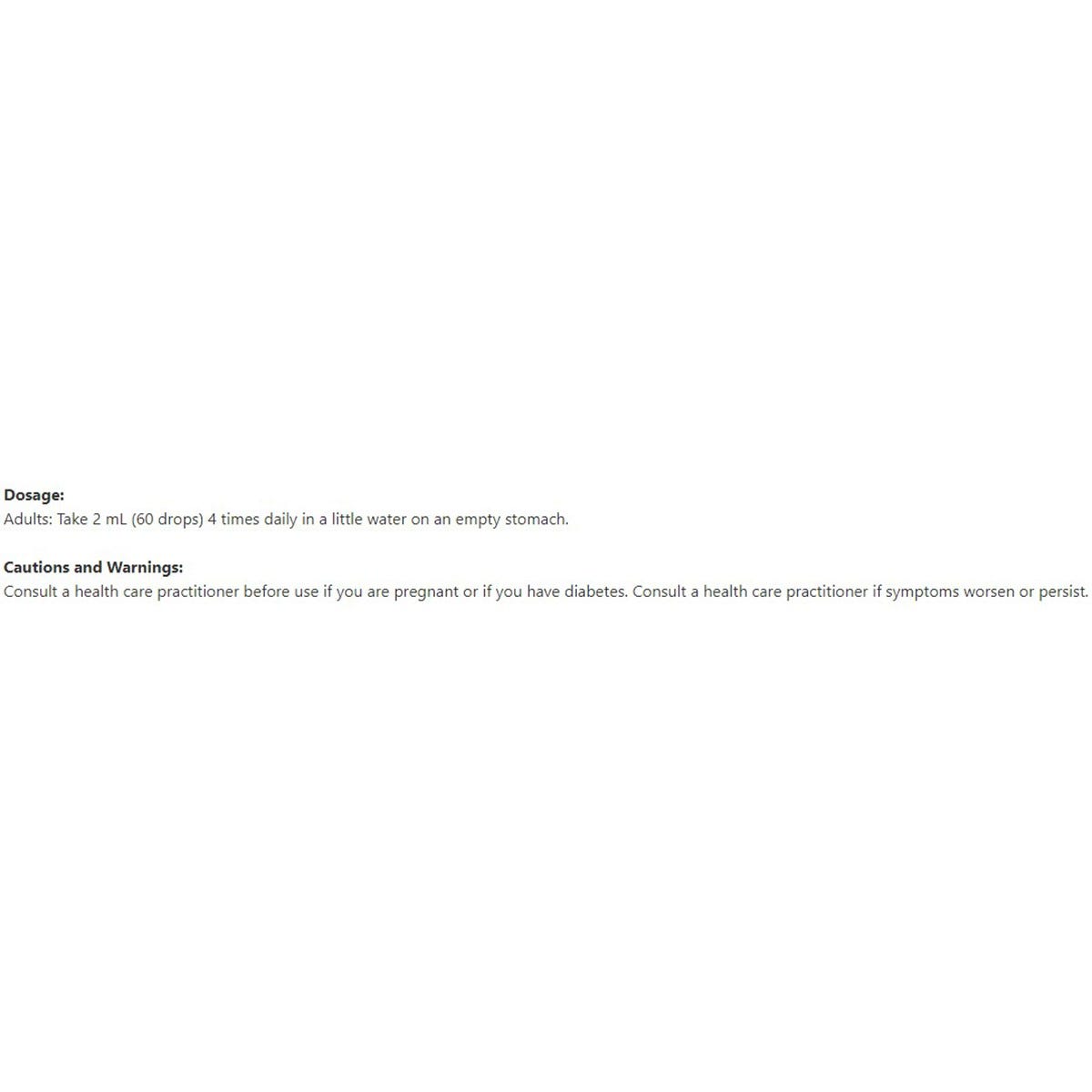 Adults: Take 2 mL (60 drops) 4 times daily in a little water on an empty stomach.