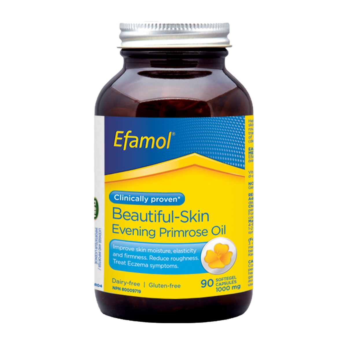 Beautiful skin doesn’t come from creams, lotions or serums. It starts inside, with what you put in your body. If you want skin that’s positively glowy, moisturize from the inside out with Efamol Beautiful-Skin Evening Primrose Oil. Evening primrose oil (EPO) is naturally rich in GLA—a skin-loving omega-6 fatty acid that minimizes fine lines, wrinkles and dull skin. Efamol uses a patented evening primrose plant, Rigel, which is grown in selected areas of The Netherlands and New Zealand by dedicated farmers and is higher in GLA than other varieties. Efamol is the only brand clinically proven to improve skin moisture, elasticity and firmness. Let your natural beauty shine through, with Efamol.