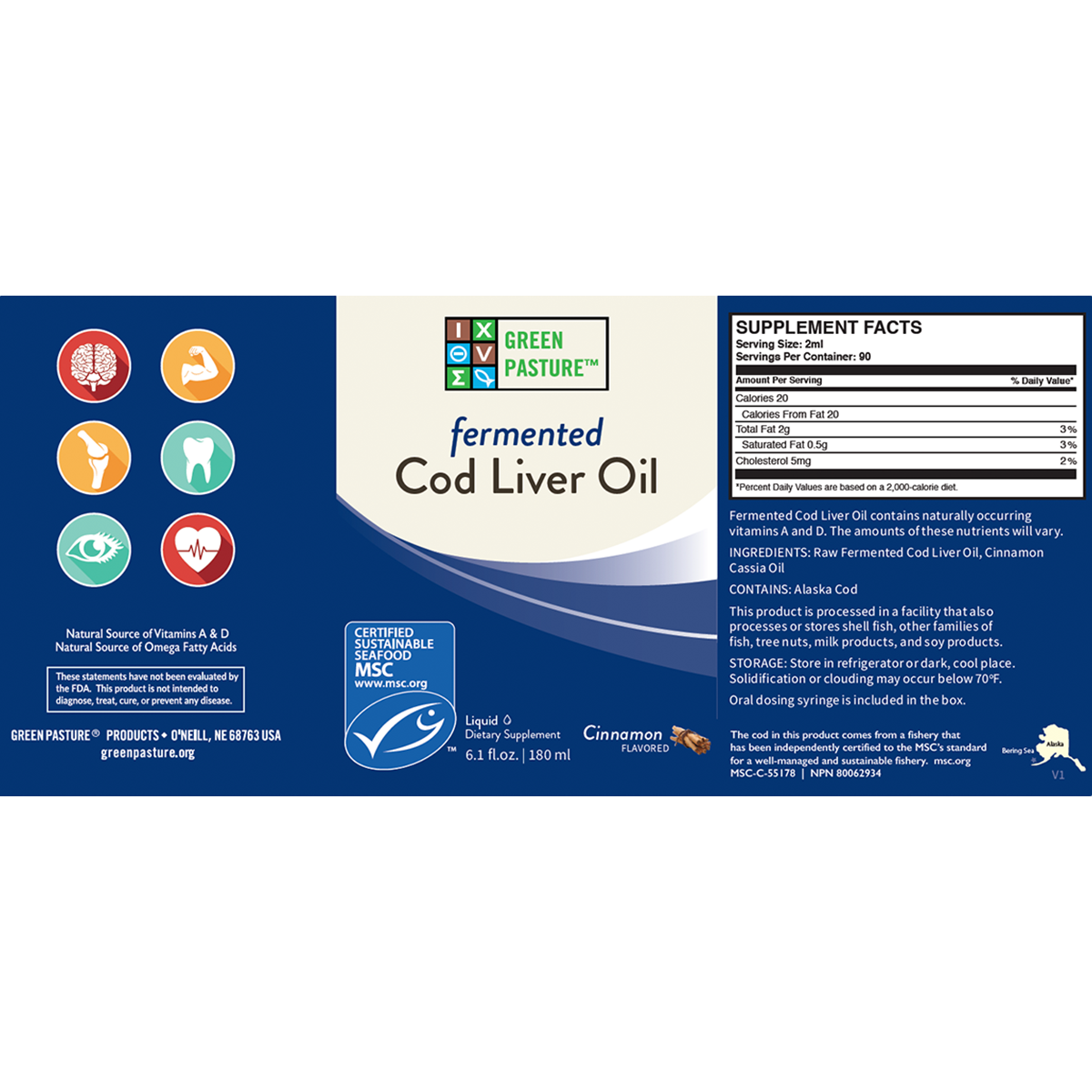 Green Pasture Fermented Cod Liver Oil Cinnamon 180mL